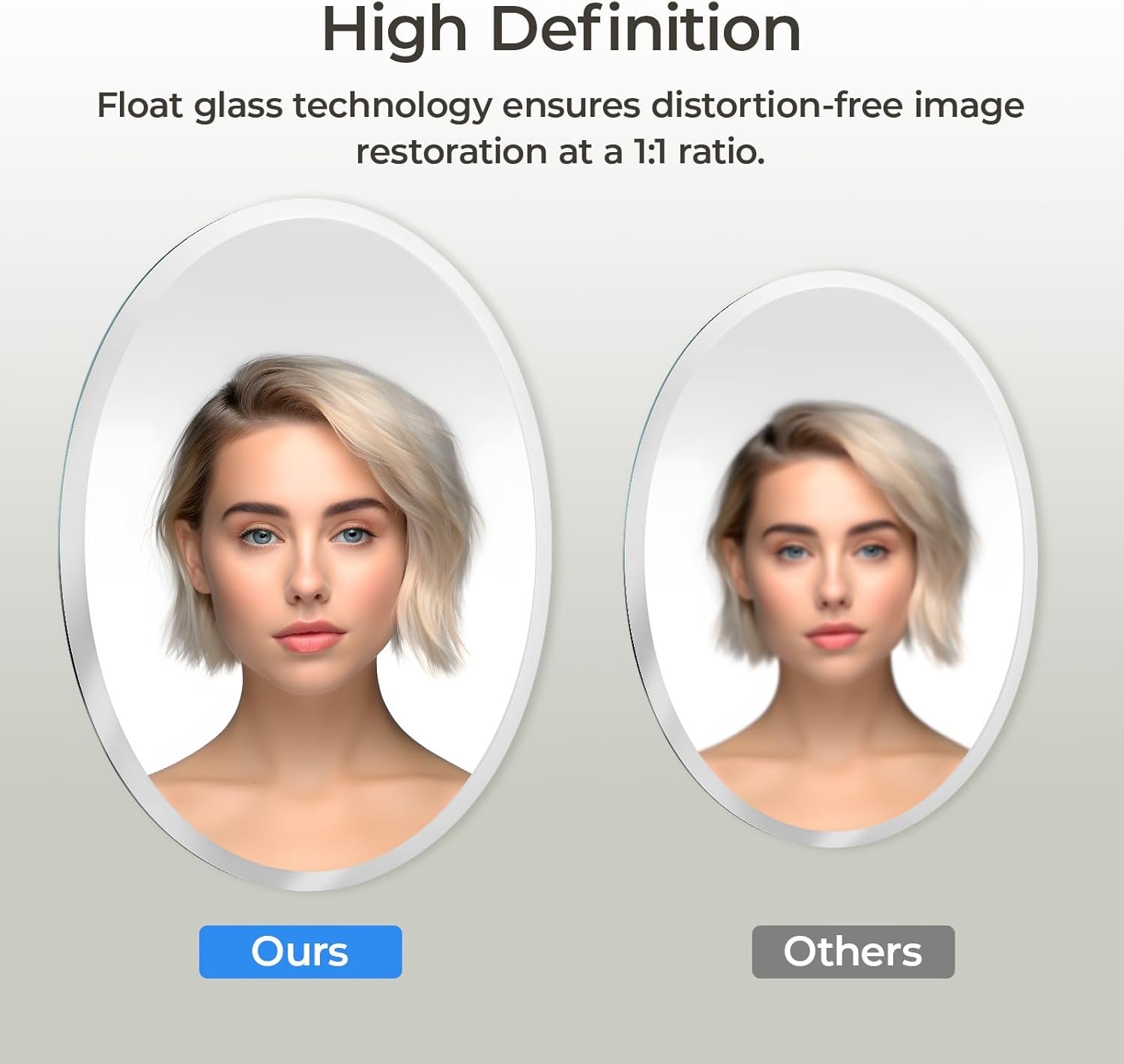 Exquisite Details: USHOWER oval bathroom mirror has polished edges for a smooth and friendly touch. Additional explosion-proof film protects your family from splinters.