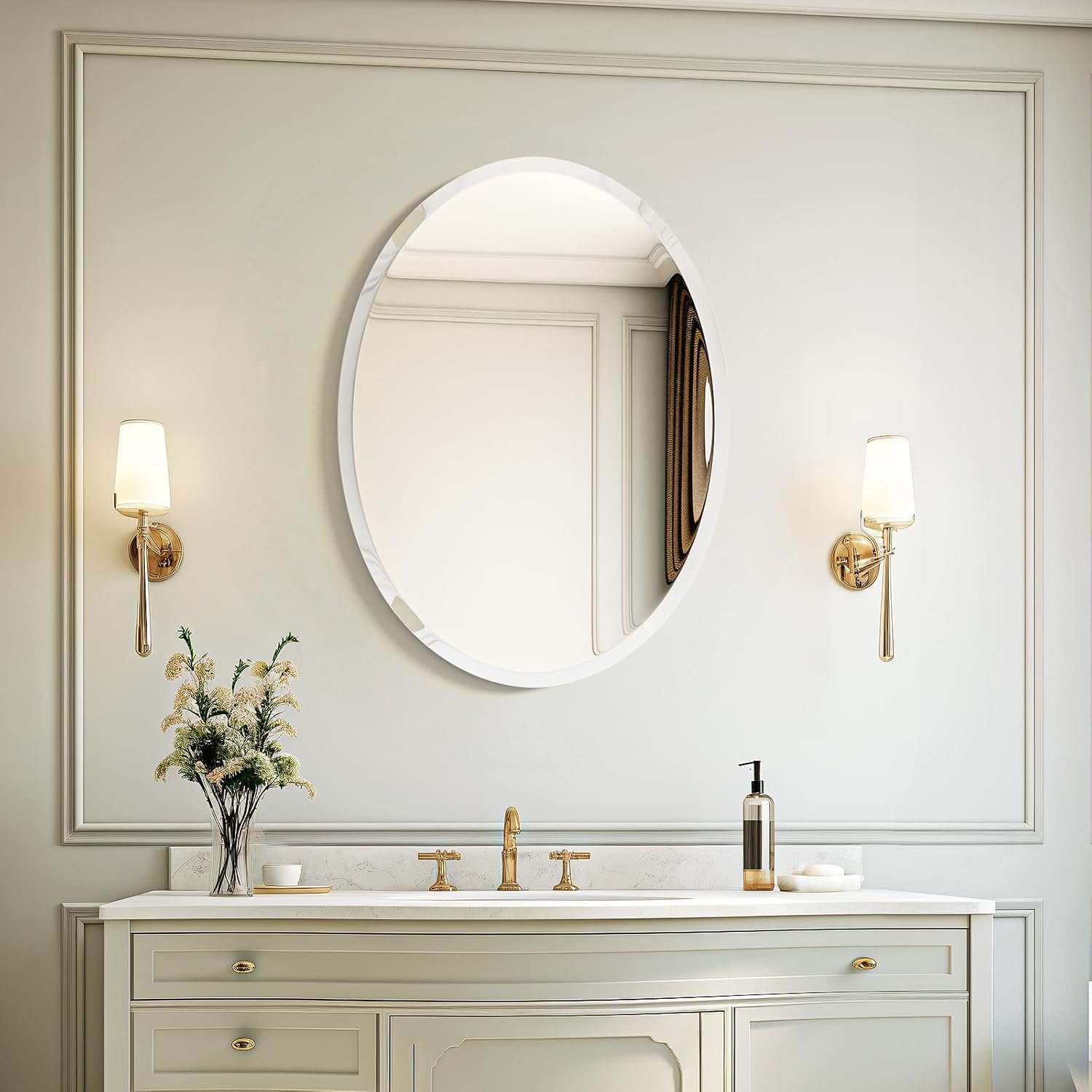 USHOWER Bathroom Mirror for Over Sink, 20×28 Inch Oval Frameless Mirror, Beveled and Polished, Decorative Wall Mirror for Bathroom, Bedroom, Vanity, Entryway, Modern and Elegant