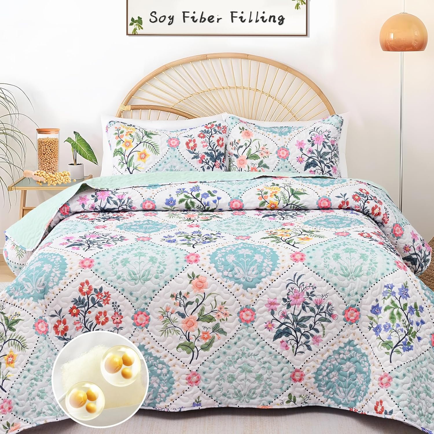 【Soy Fiber Filling: Cloud-like, Lightweight & Breathable】Experience cloud-like softness with our new-gen soybean fiber filling quilt, crafted from protein-spun fibers, more breathable and lightweight than traditional fills. It is filled with 20% soybean fiber + 80% polyester, this scientifically optimized blend can keep you cool in summer and cozy in winter—perfect for hot sleepers or anyone craving a hypoallergenic, eco-friendly option.