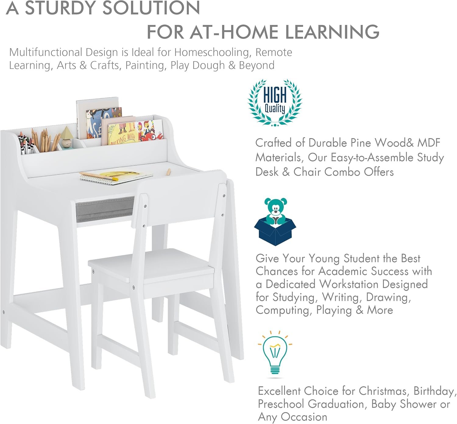 Giving Your Young Student the Best Chances for Academic Success with a Dedicated Study Desk with Chair, Designed for Studying, Writing, Drawing, Computing, Playing & More Set Includes Desk and Chair Combo, Built-In Storage bins, Tabletop Organizer. Recommended for Boys & Girls Ages 3 to 8.