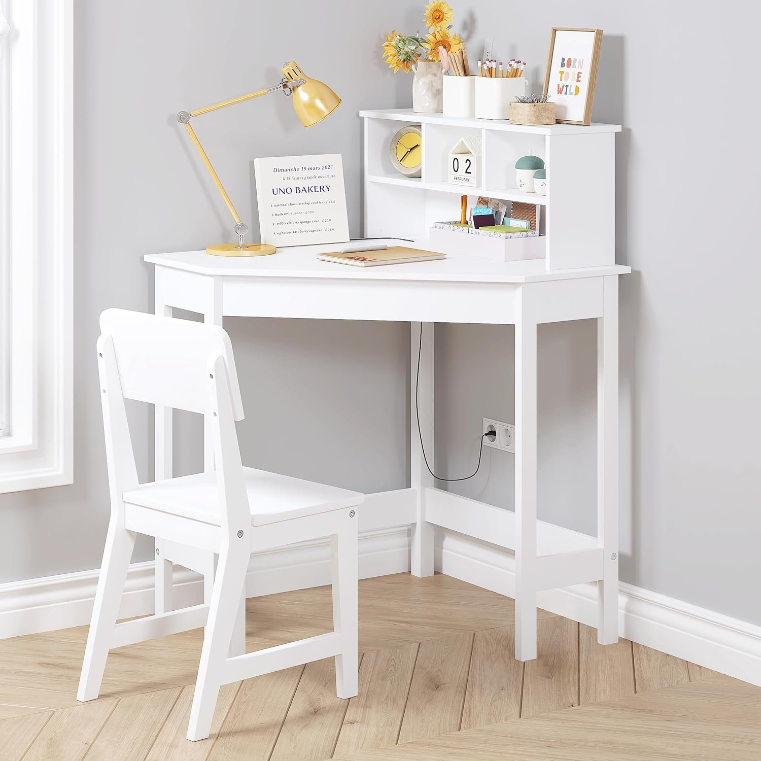UTEX Kids Desk, Kids Corner Desk and Chair Set, Children Study Table with Storage and Hutch for Home School Use, White