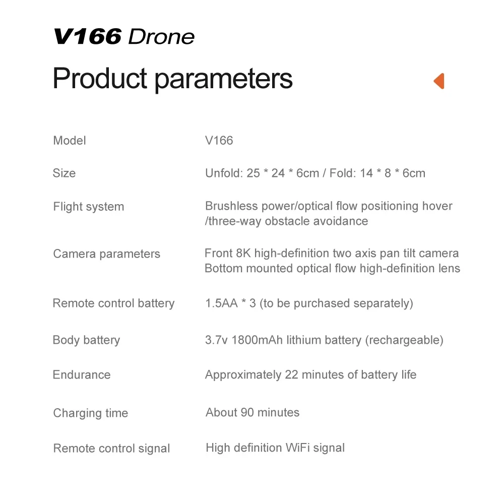 V166 drone with 8K 4K dual cameras Obstacle avoidance optical positioning foldable Wifi Fpv Brushless RC Dron Quadcopter Toy