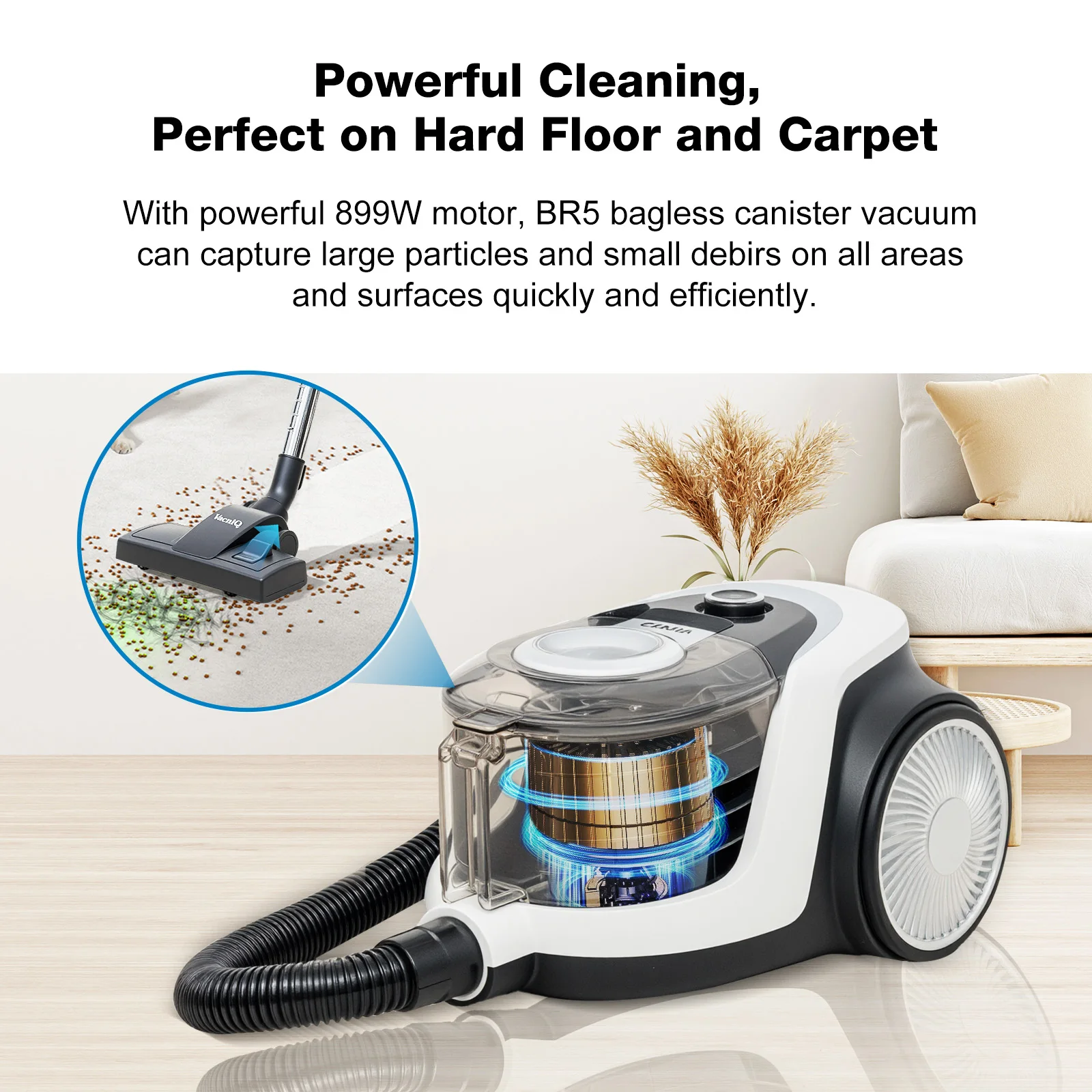 VacniQ BR5 bagless canister vacuum cleaner has effective cleaning performance. With a powerful 899W motor can capture large particles instantly, it quickly separates dust and air to prevent recontamination, ensuring sustained and powerful suction. With just one machine, you can clean without worrying.