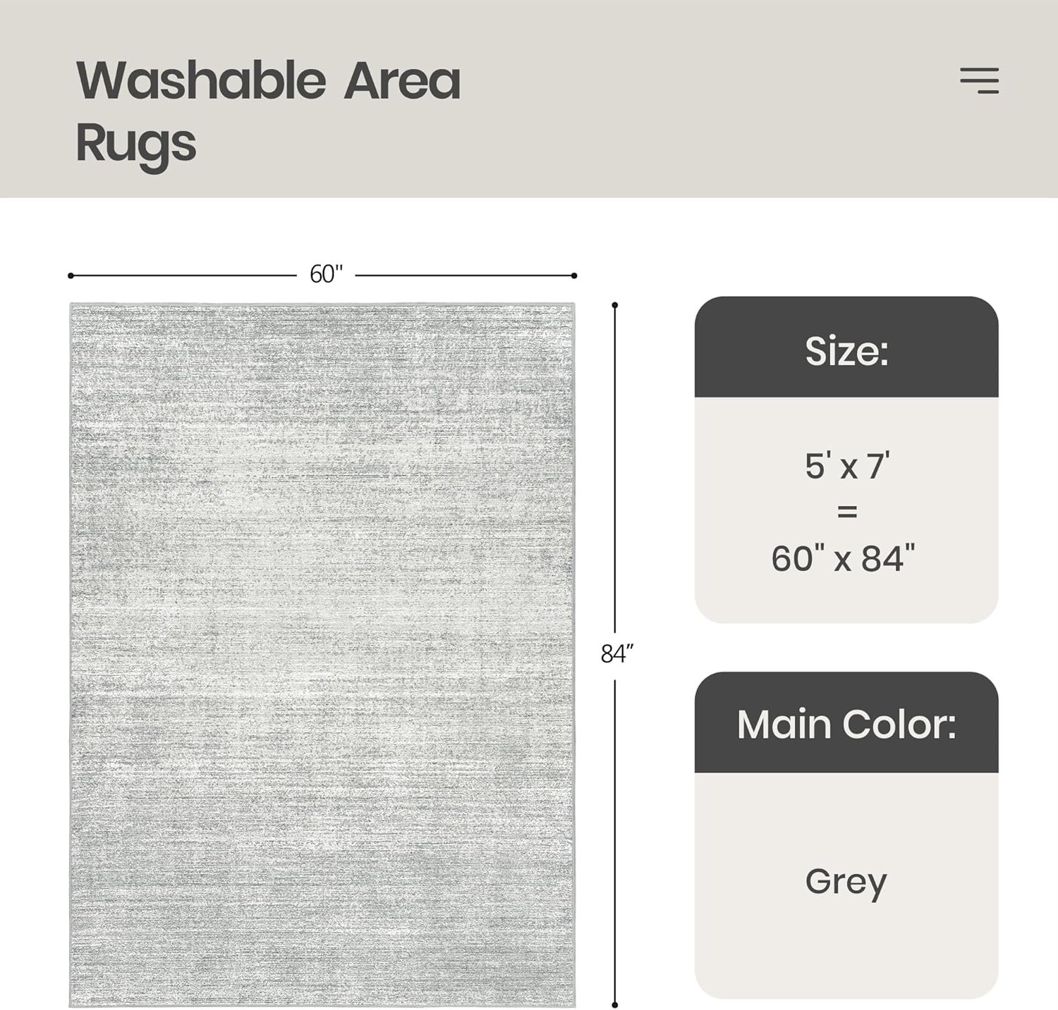 Valenrug Washable Rug – Stain Resistant Area Rugs for Living Room, Non Slip Backing Printed Rugs for Bedroom, Folable Machine Washable Area Rug (Grey, 5’x7′)