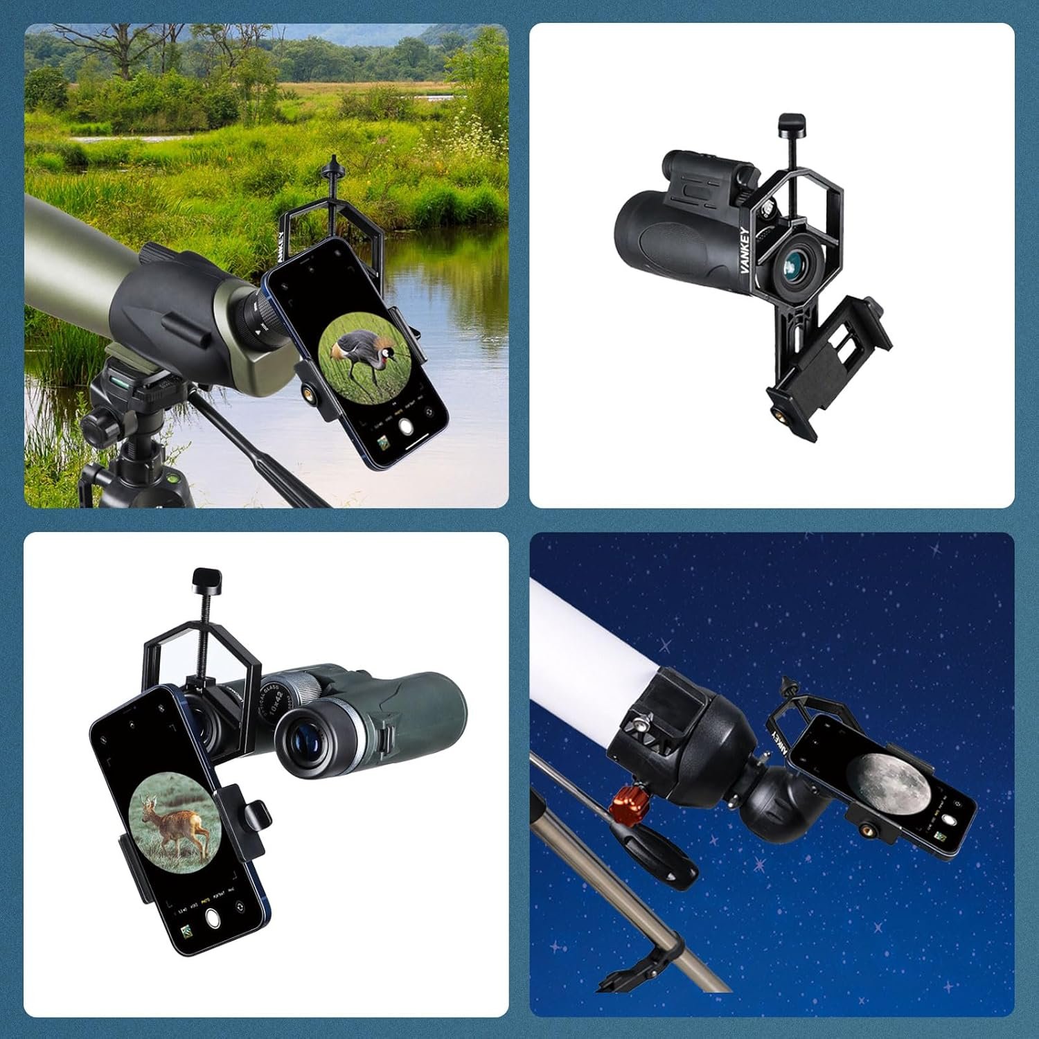 【Enjoy Exploring Fun】With Vankey big phone telescope adapter Bluesky V1-L, connect your phone with telescope, look the image via phone screen easily and clearly.