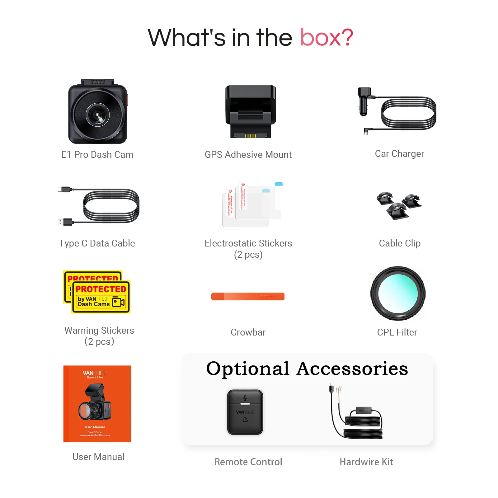 [Mini & 4K Mighty] Vantrue E1 Pro dash cam is equipped with Sony IMX678 sensor (8MP) that captures your journeys in breathtaking 4K 3840 x 2160/30FPS resolution! Featuring a wide 158° lens, it ensures no detail is missed—recording license plates, road signs, and pedestrians to provide crucial evidence for insurance claims. Car Camera E1 Pro’s compact design is roughly size of one-dollar coin, making it easy to hide on windshield. CPL Filter (included) effectively reduces sunlight reflectionï¼