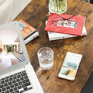 Les pieds noir mat et le dessus brun rustique insuffleront chaleur,caractère et peut-être inspiration à votre bureau à domicile.