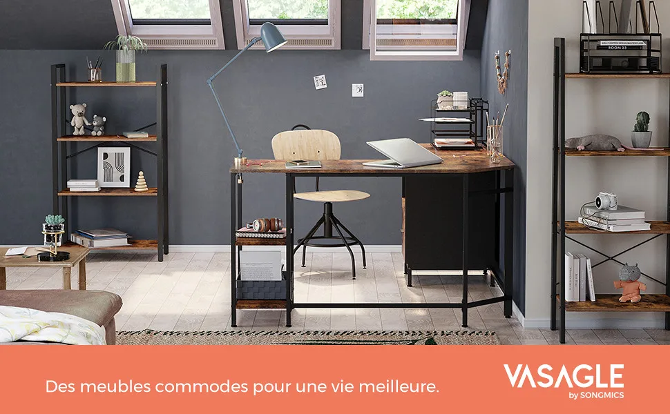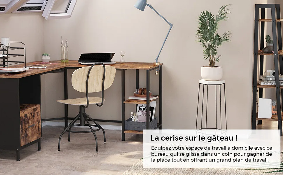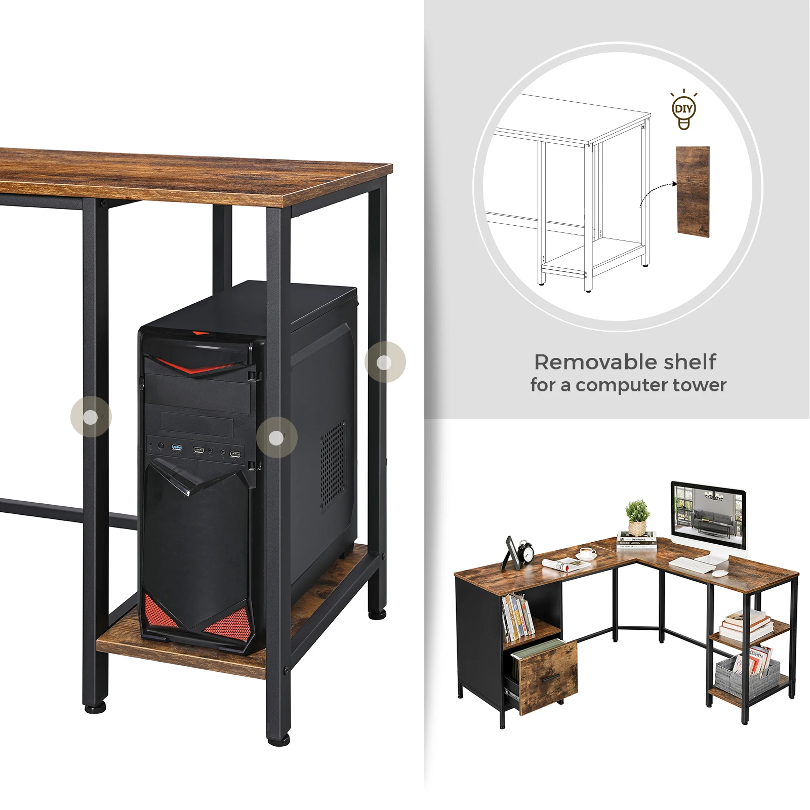 VASAGLE Corner Desk, L-Shaped Computer Desk, Office Desk with Cupboard and Hanging File Cabinet, 2 Shelves, Home Office