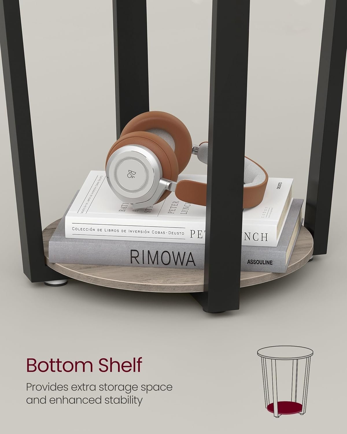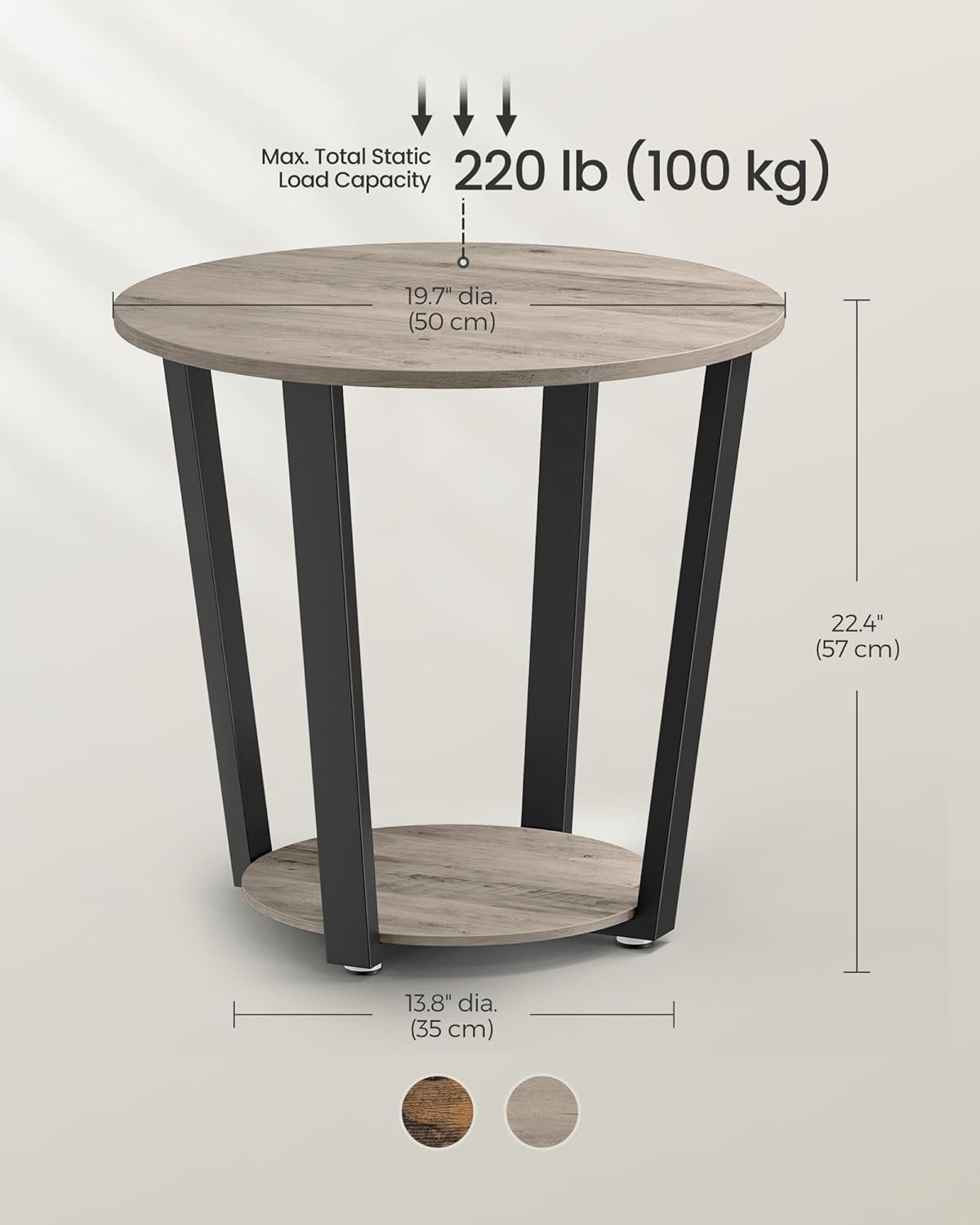 [Strength Meets Storage] It’s not just an eye-catching end table. With thick particleboard and sturdy steel bars, this side table boasts a total load capacity of 220 lb. The 2 levels of storage space make it an indispensable side table in your home