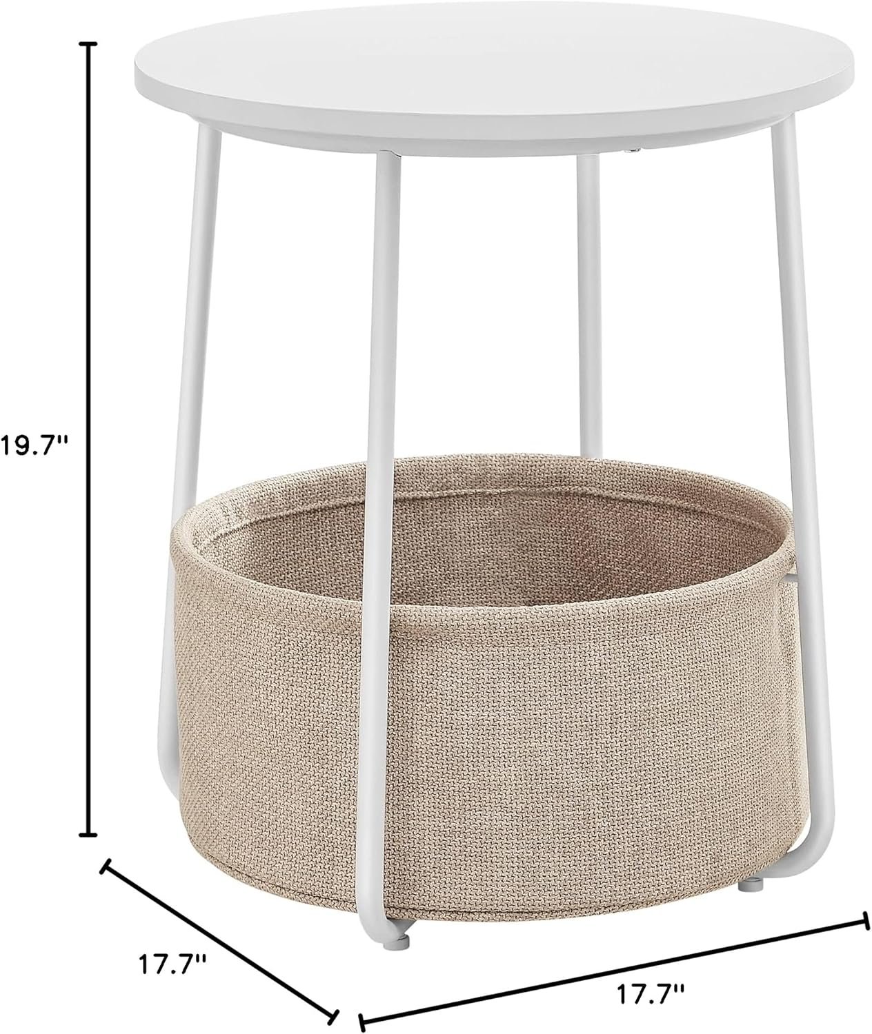 [Delights Small Spaces] The 17.7″Dia. x 19.7″H end table with 15.6″Dia. x 7.2″H basket fits perfectly in small spaces, occupying little space while offering ample storage. You can use it as a side table in the living room or a nightstand in the bedroom