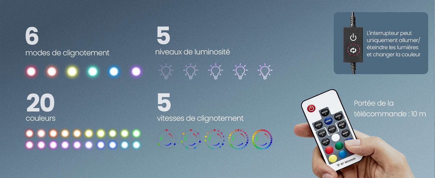 ã€AMBIANCE PERSONNALISÉE】Ce bureau gaming est doté d’un éclairage LED intégré,vous offrant un choix de 20 couleurs,6 modes de clignotement,5 niveaux de luminosité et 5 vitesses de clignotement. Personnalisez l’ambiance de votre pièce