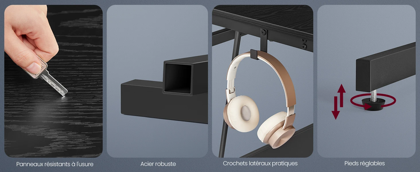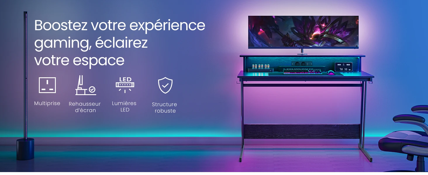 [Assemblage simple] Ce bureau gaming avec lumières LED se monte en un clin d’Å“il grâce à sa structure simple,ses pièces numérotées et ses instructions illustrées. Vous pourrez commencer à jouer à vos jeux vidéo préférés en un rien de temps