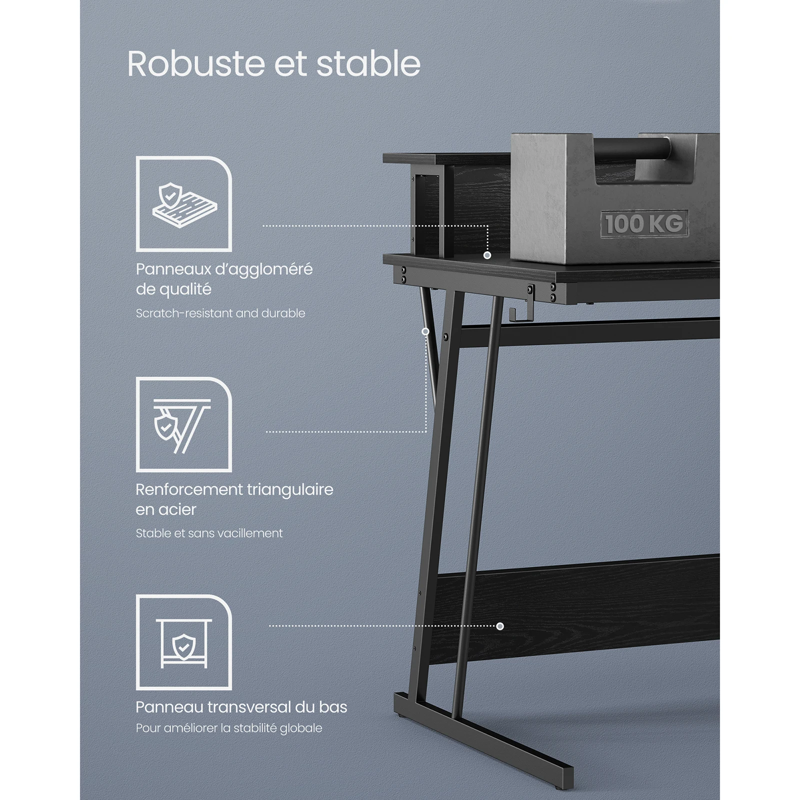 – Veuillez ne pas dépasser la capacité de charge du bureau.