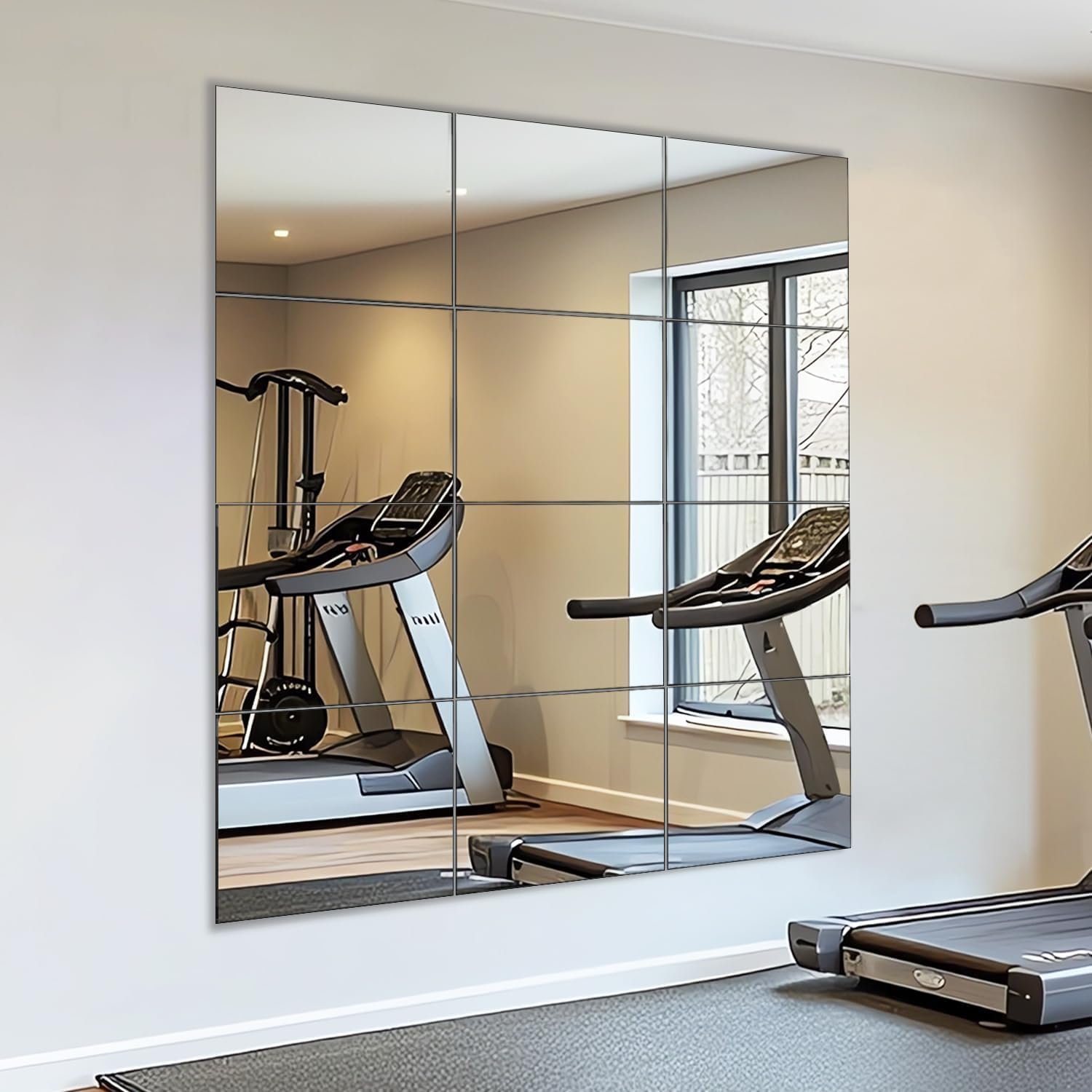 VASUHOME Home Gym Mirrors 12 Inch x 12PCS, HD Glass Wall Mounted Mirror Tiles for Home Gym, Bedroom, Living Room, Door, Closet