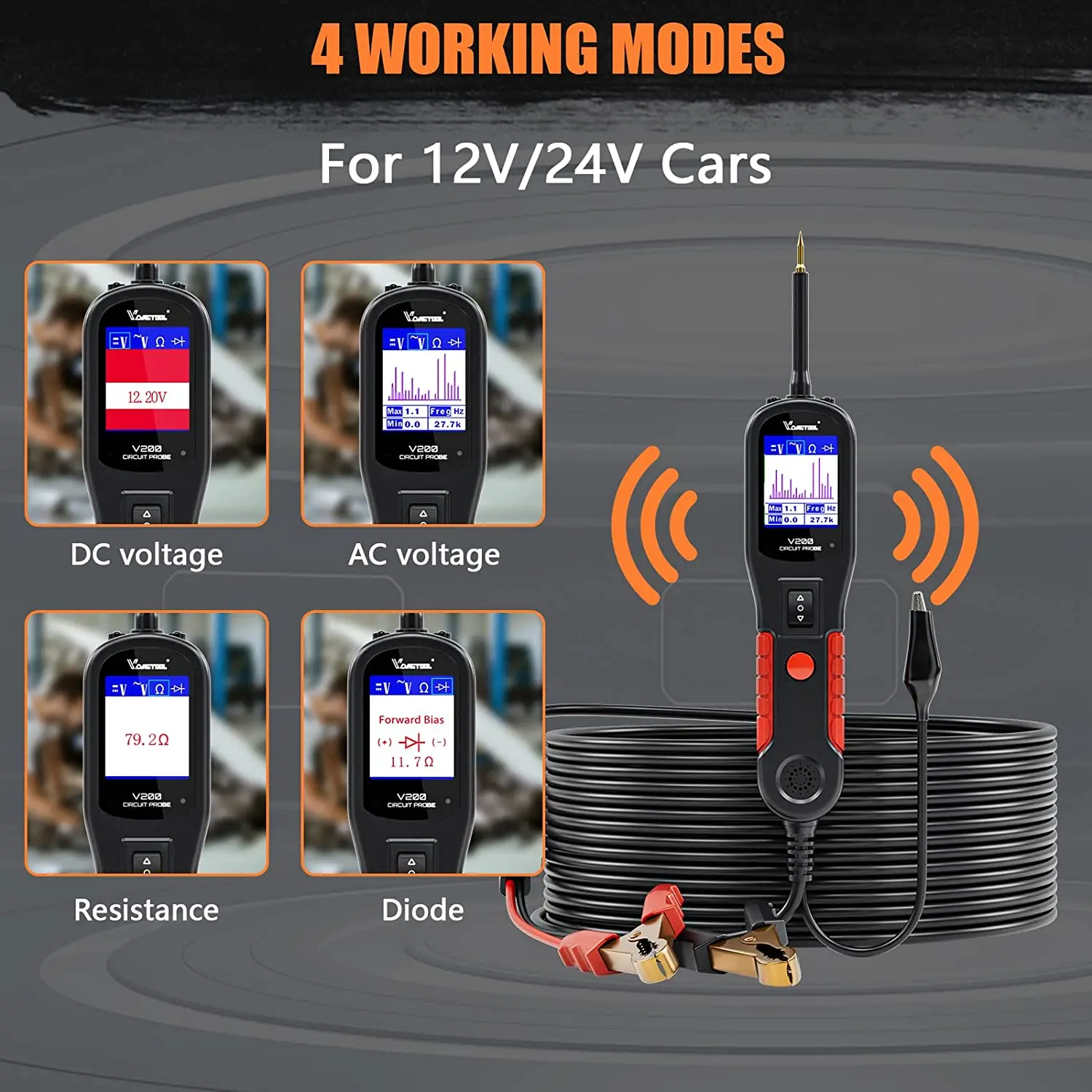 VDIAGTOOL V200 Car Electric Circuit Tester 6V-30V Automotive Power Probe Kit Electrical System Tester LCD Display Voltage Tester