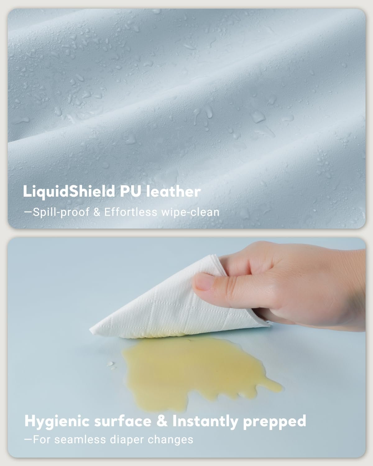 Premium Waterproof & Wipeable Design: Crafted with eco-friendly, non-toxic TPU material, this baby changing pad repels liquids and wipes clean in seconds—no stains or odors. Perfect for messy diaper changes