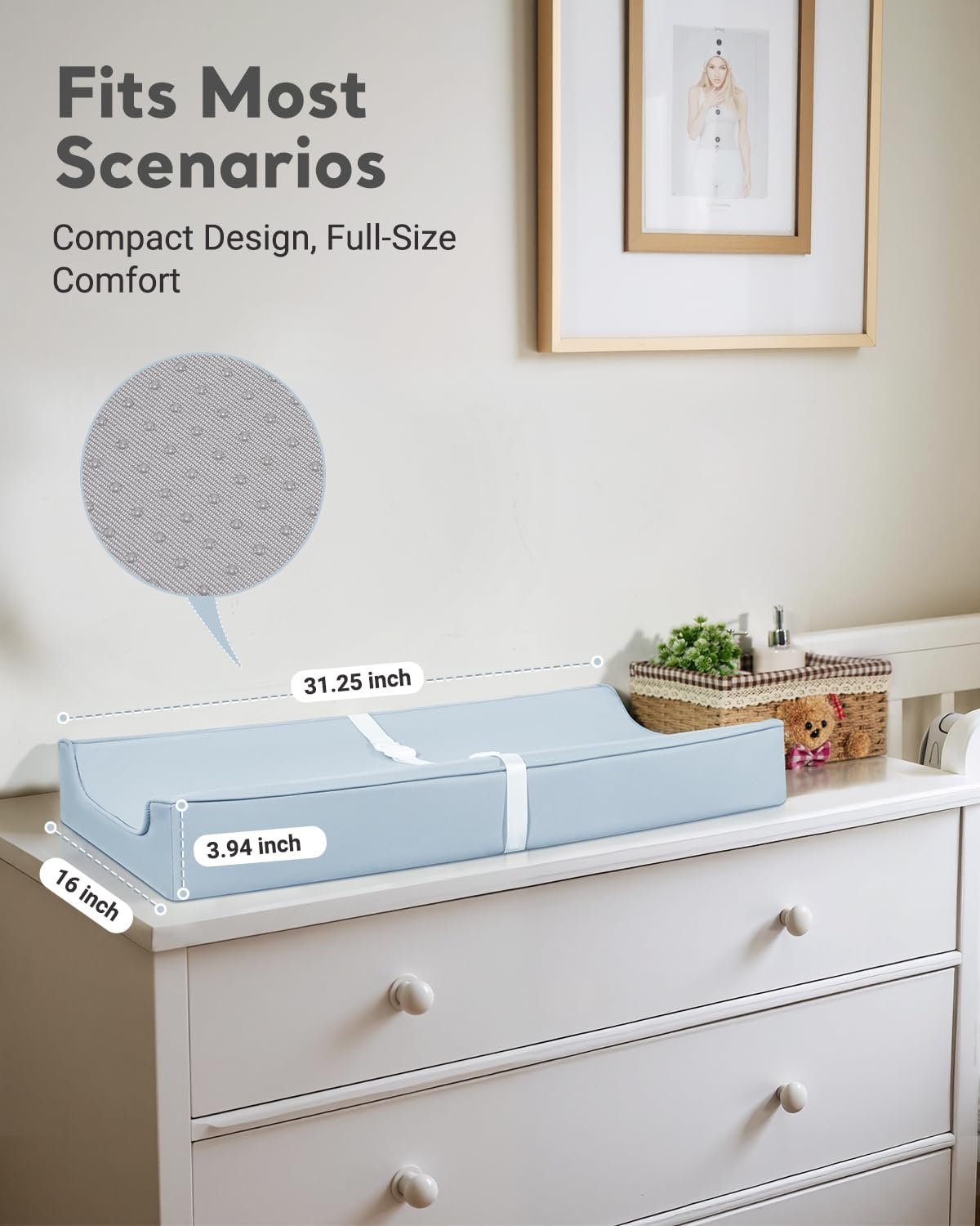 Ultra-Thick & Non-Slip Safety: 4-inch extra-thick foam provides cushioning comfort, while the non-slip back keeps the pad securely in place on any surface—ideal for dressers, cribs, or travel