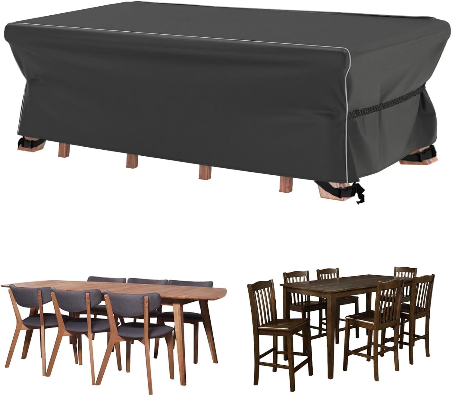 【Multiple Sizes Choices】– A variety of sizes make the cover suitable for not only outdoor patio garden furniture, but also various shape of indoor/ outdoor furniture, such as fabric sofa, patio bar, rattan furniture, etc. Please measure your furniture before purchasing, especially the depth of the chairs if you put the chairs and table together.
