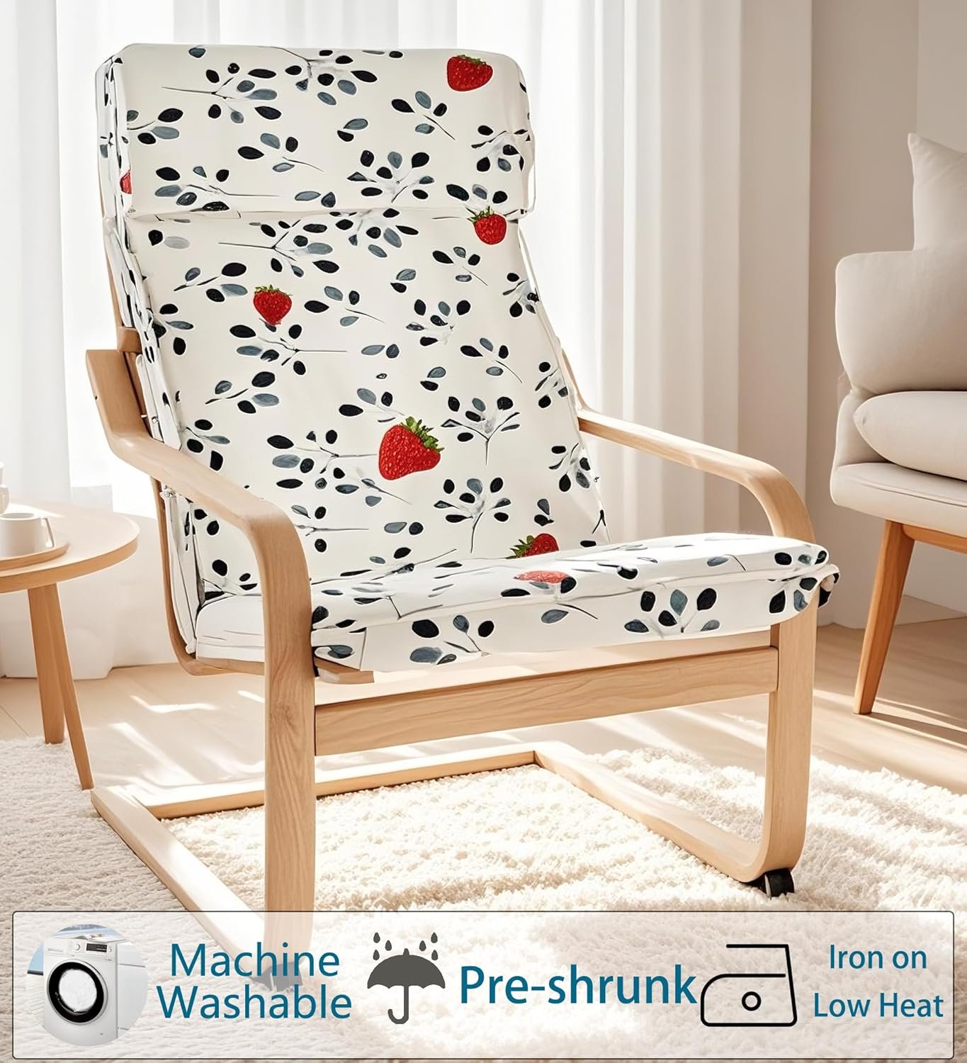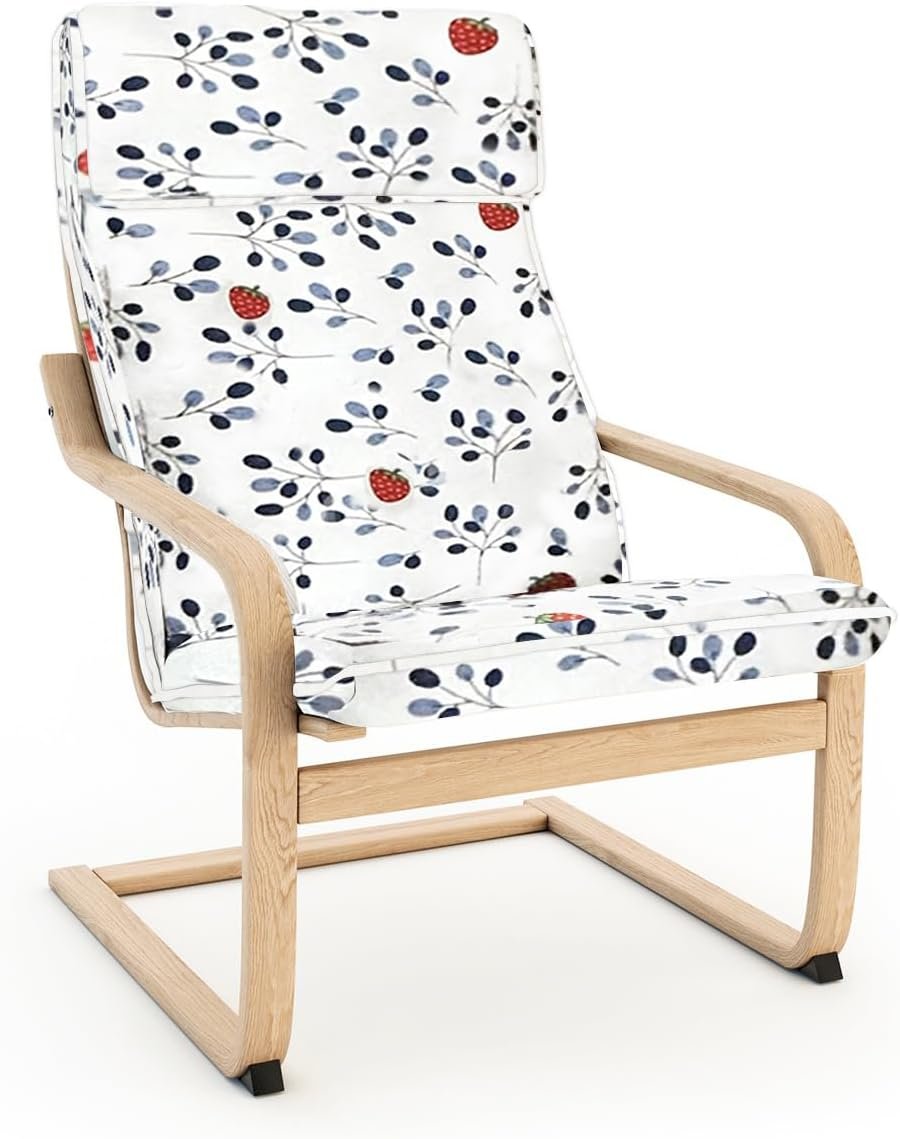 Vepping Lude Pattened Armchair Cover Replacement with Quilted Lining, Fits IKEA Poäng Armchair, 100% Cotton, Cushion not Included (Strawberry, Chair Type 1)