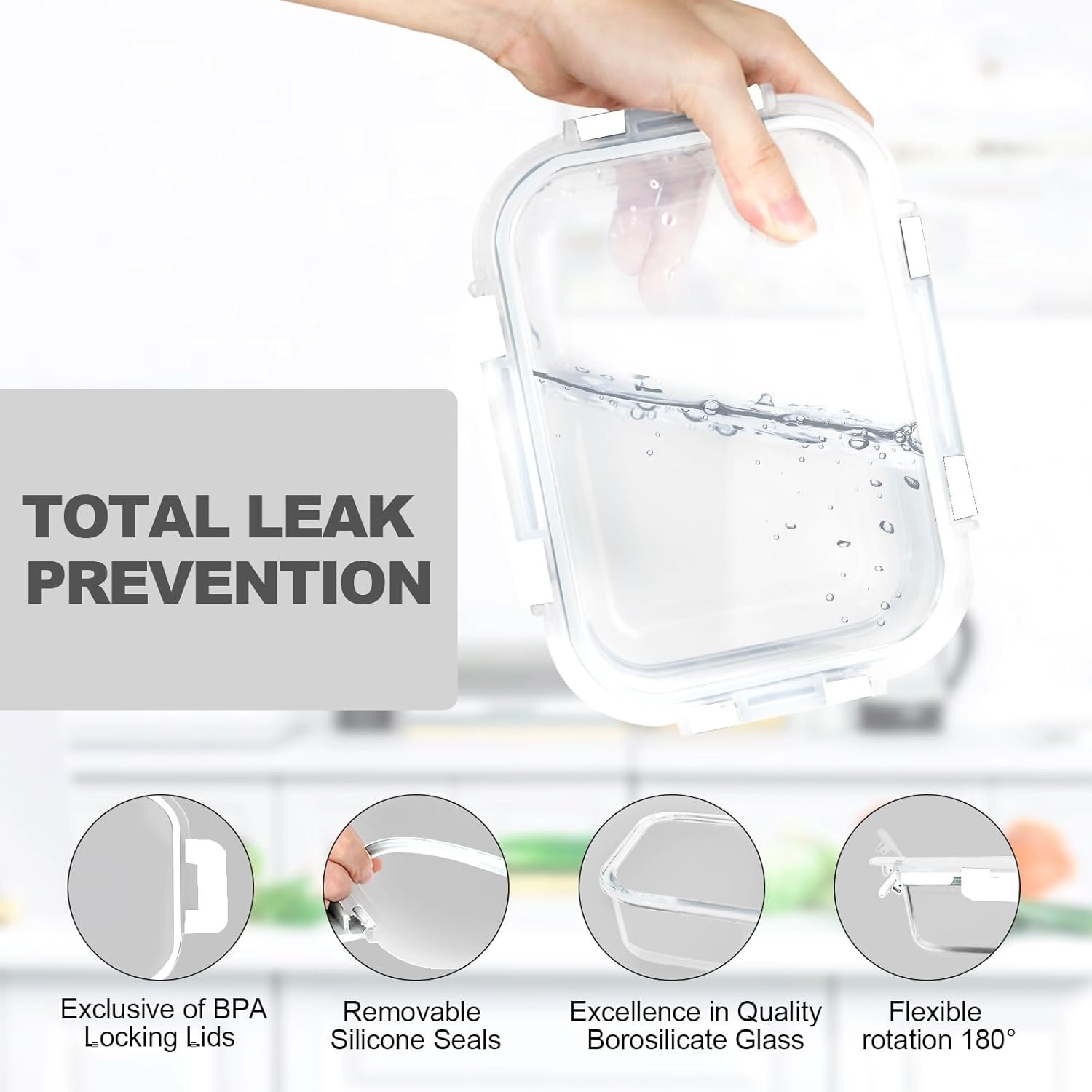 10 Pack Glass Lunch Containers: This glass storage containers set includes 10 packs 22oz containers for meal prep, office lunches, leftovers, portion control, bringing to the gym, picnics, travel and more. Glass lunch containers with locking lids. They stack together and take up less space.