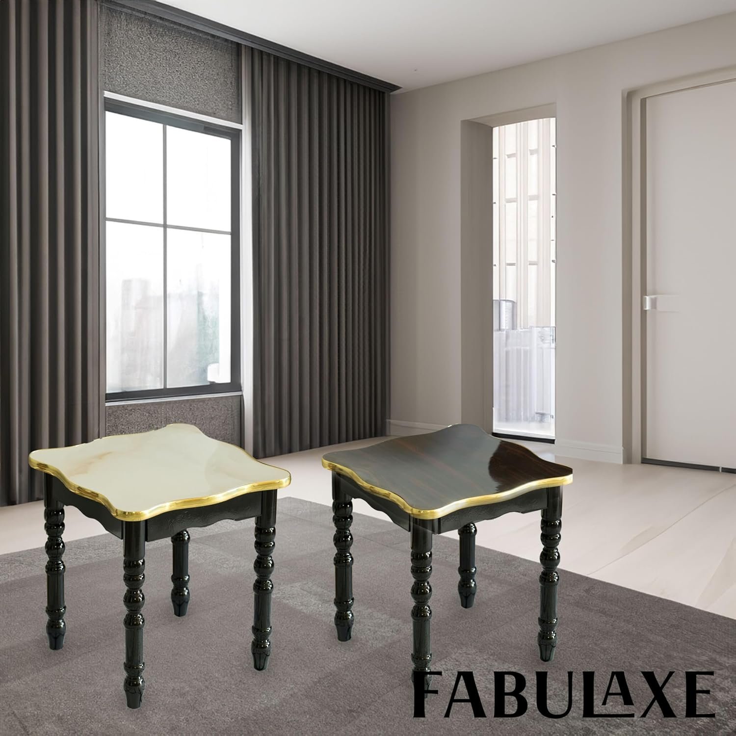 Elegance Redefined: Elevate your living room decor with the Fabulaxe accent table, meticulously crafted to enhance your space. The square design, espresso wooden legs, and a glossy marble tabletop adorned with gold trim create a timeless and sophisticated aesthetic.
