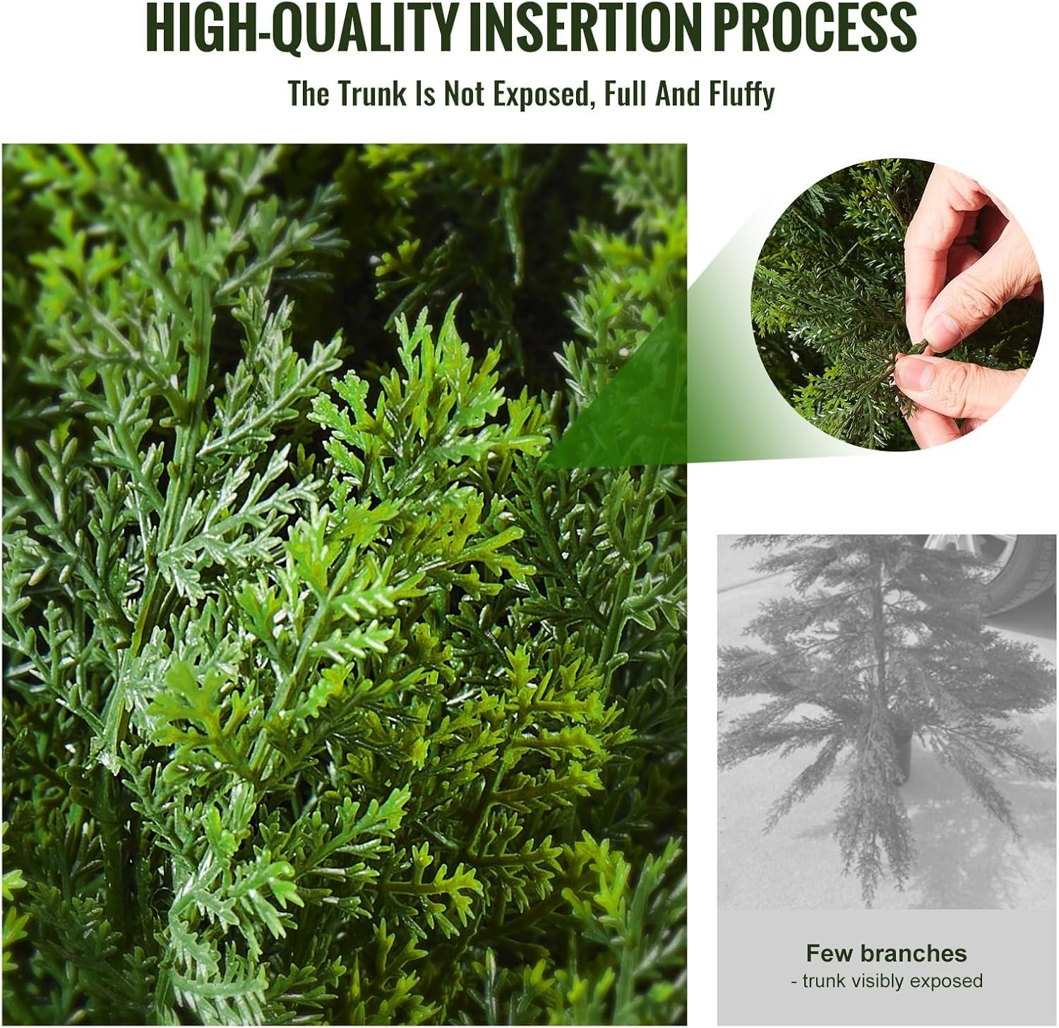Evergreen Topiary Tree: This artificial cedar tree stays green year-round, resisting fading even in direct sunlight. Maintenance-free, it maintains a beautiful outdoor condition and is certified by SGS for fire resistance, GRS for global recyclability, and Reach for component safety.