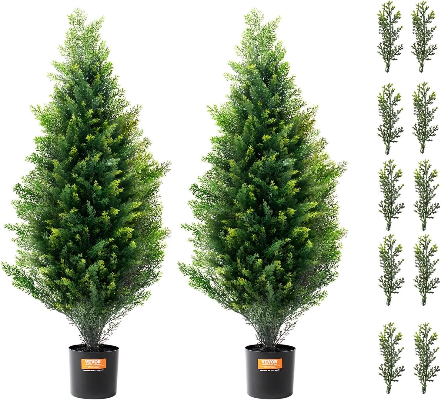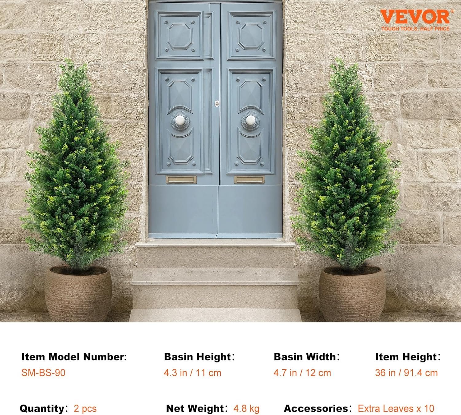 VEVOR Artificial Cedar Topiary Tree, 36 inch Tall (2 Pieces), with Extra Leaves & Pot Faux Evergreen Fake Pine Cypress Trees Plant, UV Rated Artificial Greenery Set for Home Decor Indoor/Outdoor
