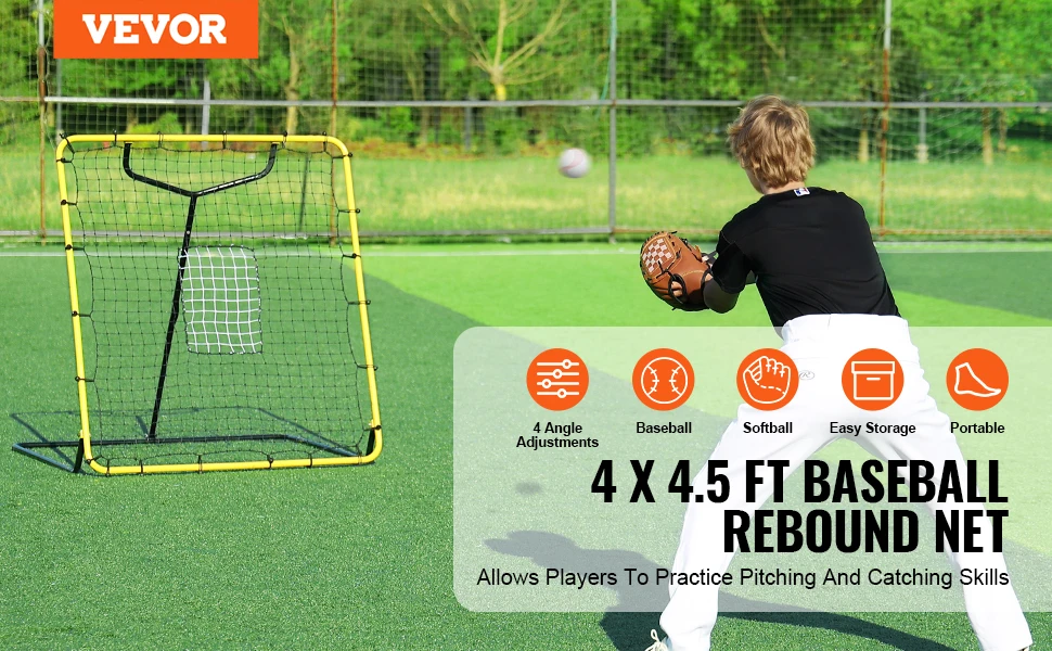 VEVOR Baseball And Softball Rebounder Net 4 x 4.5 Feet PitchBack Baseball Nest for Pitching and Fielding Training 4Angles 7.59kg