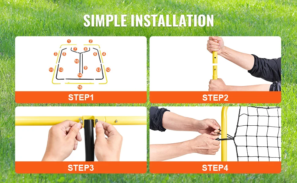 Durable Steel Construction: Constructed with Q195 heavy-duty steel frame and UV-resistant PE rebound netting. Includes 4 sturdy ground stakes to withstand high-impact practice without tilting or collapsing. Durable materials resist wear and tear.