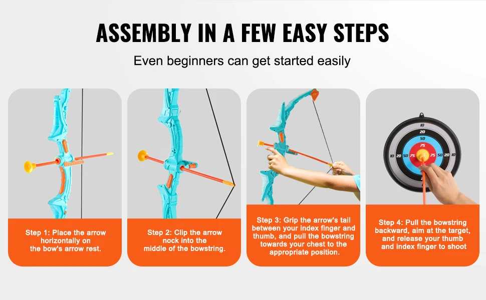 The kids archery set is super easy to use, even for beginners! Only need a few simple steps, and you’re good to go. So, gather the whole family and enjoy some instant fun and bonding time!