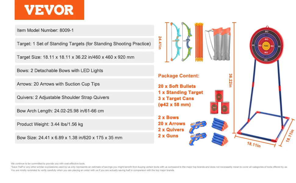 5 reviews for VEVOR Bow and Arrow Set for Kids 2 Pack LED Archery Set with 20 Arrows 2 Guns Outdoor Toy for Children Boy & Girl 6+ Year Old