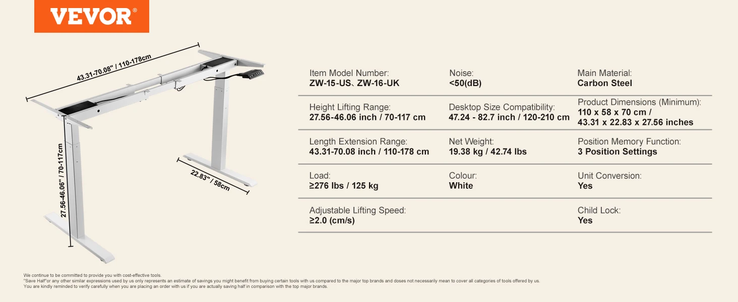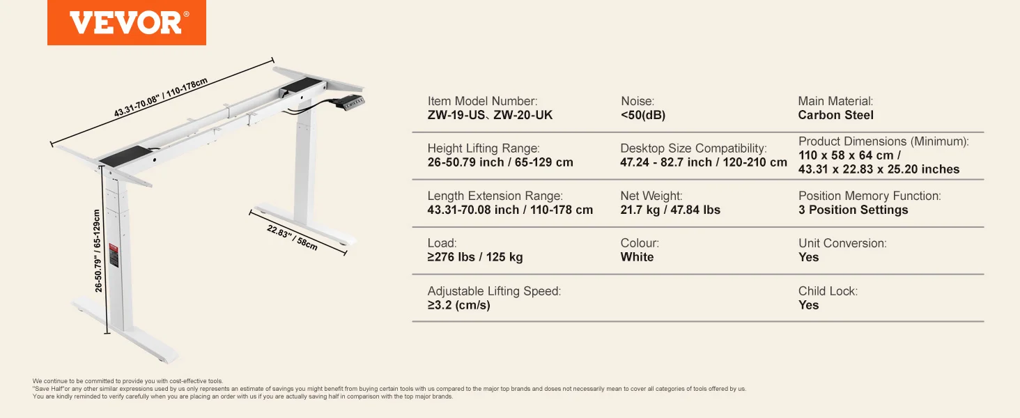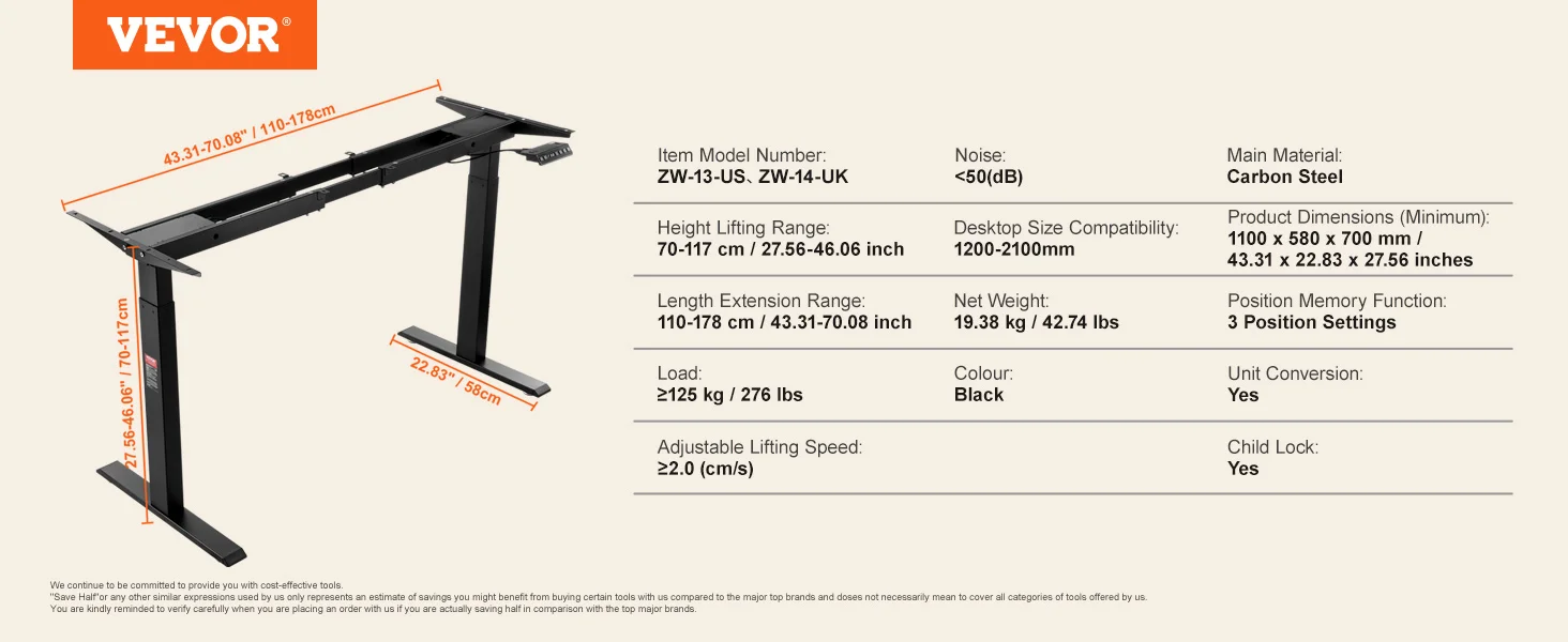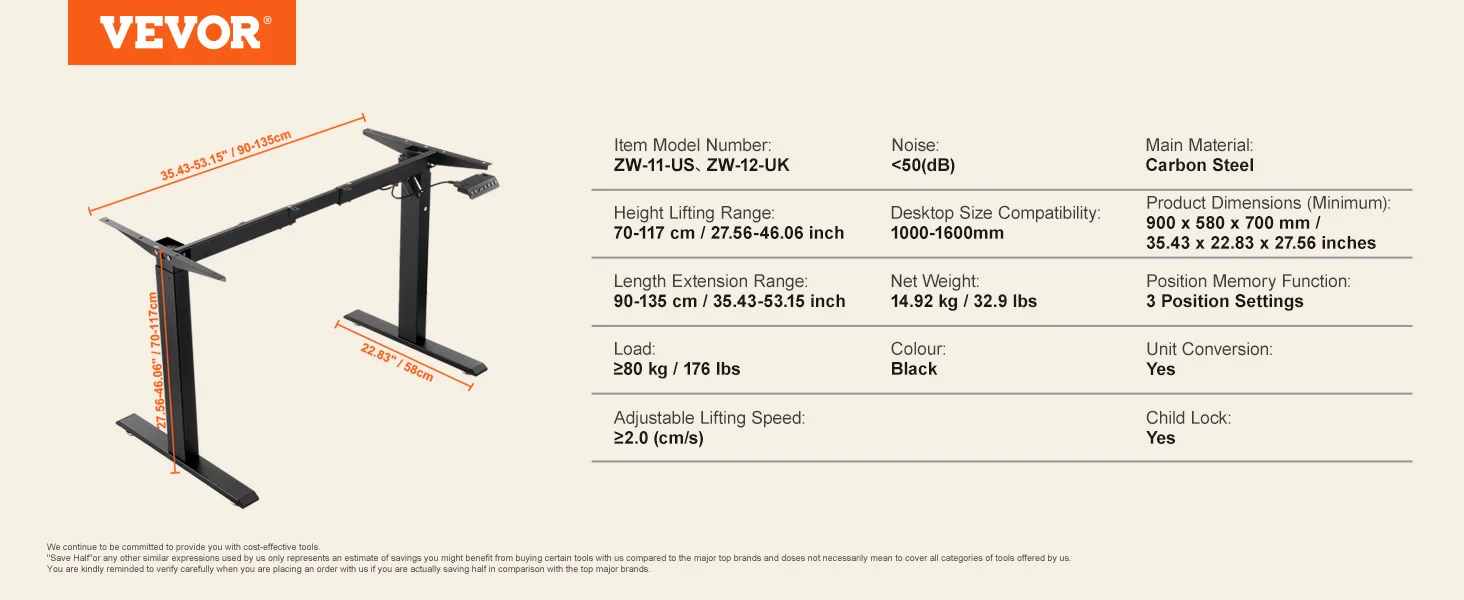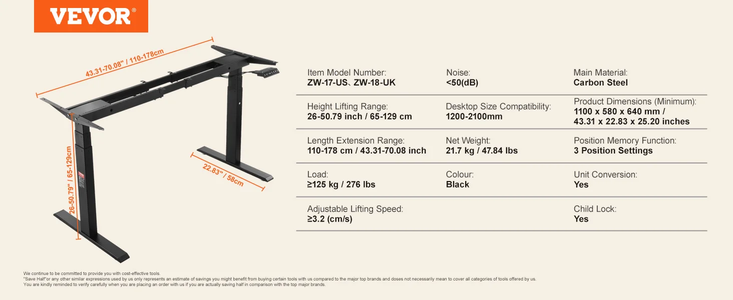 18 reviews for VEVOR Standing Desk Frame Electric Stand Up Computer Desk Legs Ergonomic DIY Workstation Base for Home and Office Black white