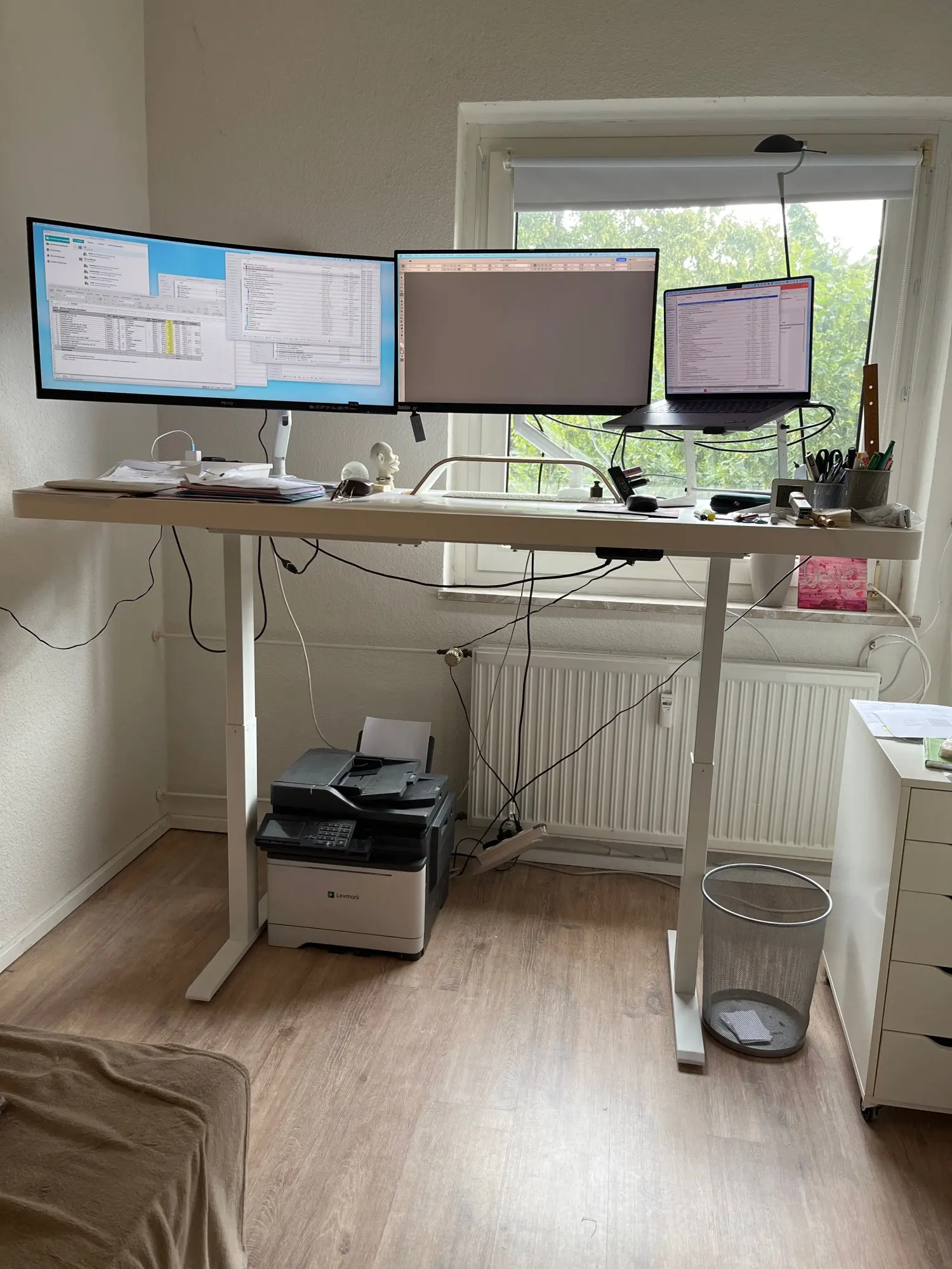 The only “slightly negative” comment i could make is the sound the table frame makes as it goes up & down is a bit “grindy”…not simply a nice whirring, but sounding lightly of grinding gears. But so far no problem.