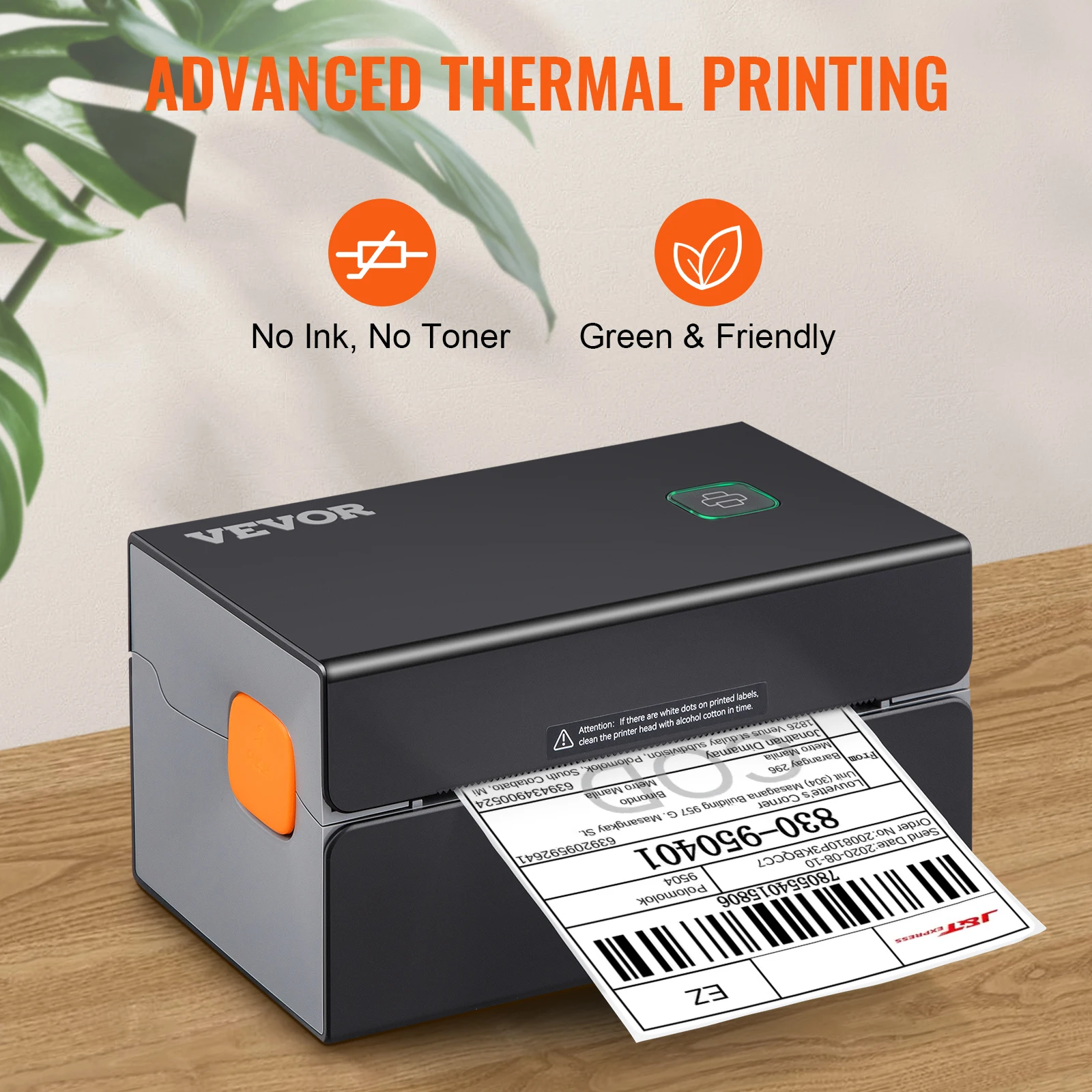 Our label printer brings to life the latest thermal print technology that requires no ink and toner, saving you money and time. In the characteristic of 300dpi and 150 mm/s high-speed printing, our thermal printer produces 3600 pieces of label per hour via Bluetooth/USB. Besides, it is compatible with all major selling platforms and supports IOS, Android, Windows, Mac OS, Linux, and Chromebook. So VEVOR printer is widely used in offices, homes, express, supermarkets, etc. Print, print, print, and see what you have been missing out.