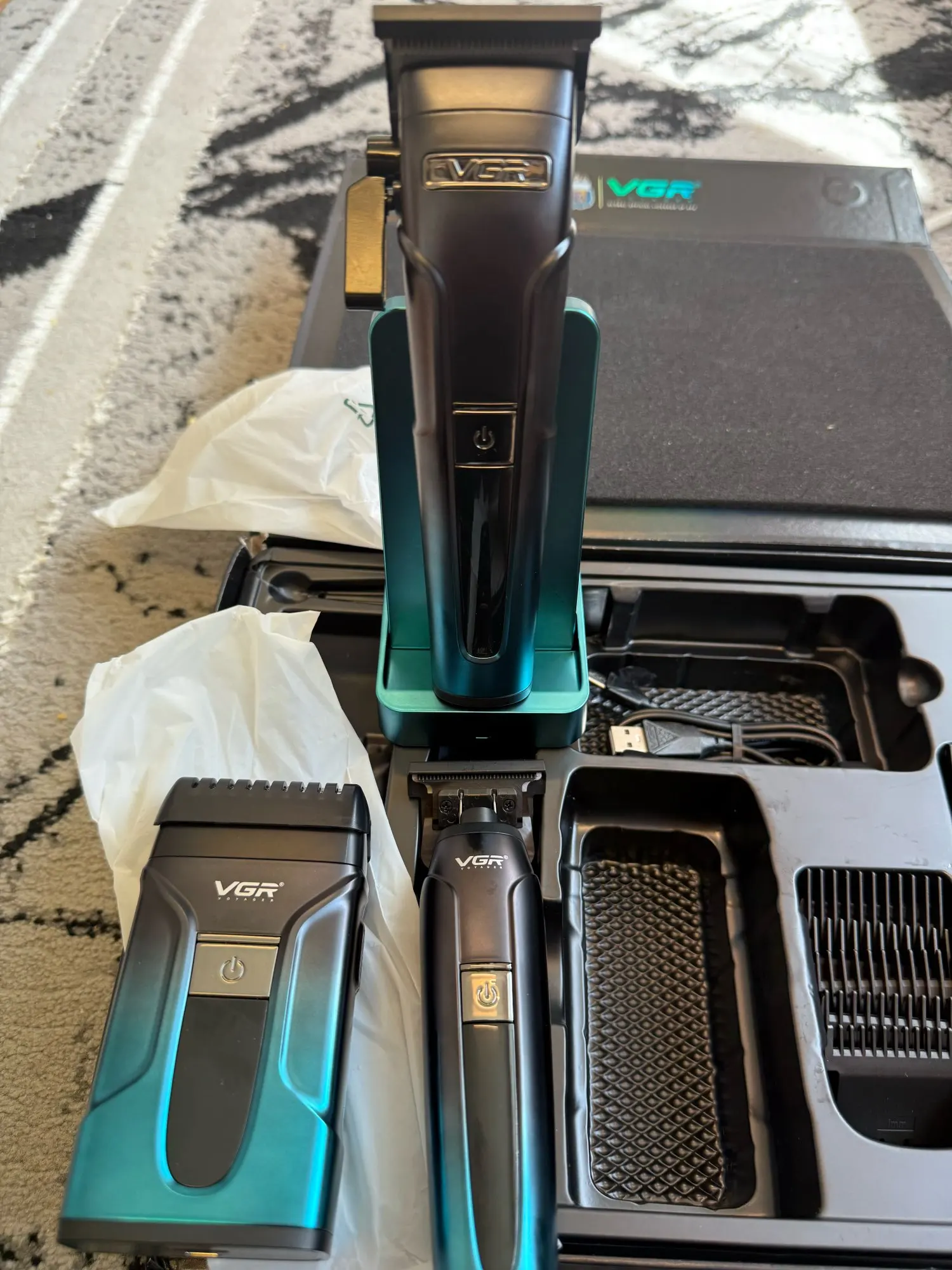 14 reviews for VGR gradient ribbon base charging hair care combination electric shaver rechargeable professional hair clippe carving pusher 694