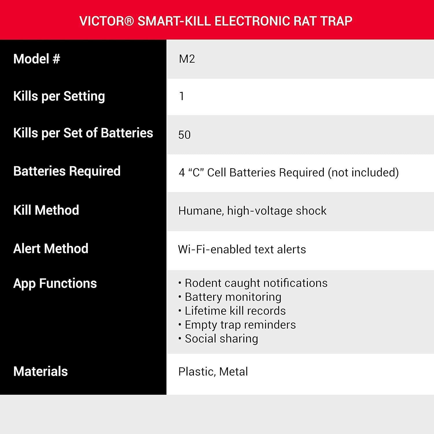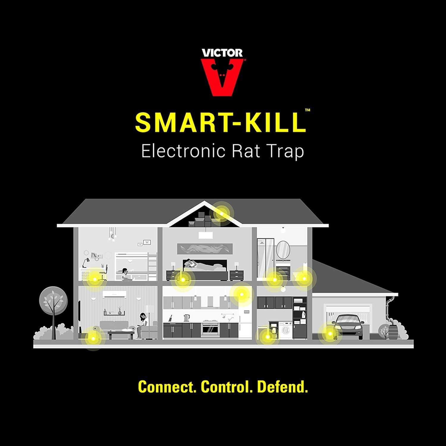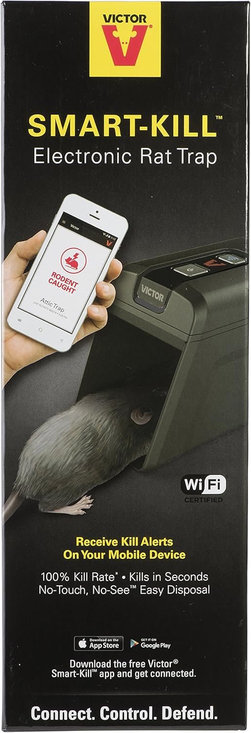 Dealing with a rat infestation is hassle enough without adding in the inconvenience of constantly checking traps – especially when you have multiple rooms or locations that need protected. With the Victor Smart-Kill Electronic Rat Trap, you can find out the progress of your trapping no matter where you are. The powerful trap works by delivering a humane, high-voltage shock to eliminate rodent invaders. Featuring innovative Wi-Fi technology, the Smart-Kill trap will send a notification to the compatible app on your smartphone once a catch is made so you will always know when it’s time to empty your trap without having to check. The user-friendly app is quick to set up and pair with your trap. It also offers the flexibility to give each trap in your pest management system a unique name so you can easily identify them. In addition to alerting you of a catch, the app will also keep track of each trap’s total number of kills, as well monitor battery life. For the ultimate in convenience, the Victor Smart-Kill Electronic Rat Trap also offers an easily removable kill chamber. This unique design ensures that the trap is easy to bait, empty and clean. By providing easy access to the included bait cup, you can get your trap set up in no time. Simply apply a high protein bait, such as peanut butter, to the bait cup, place your trap in an area with high rodent activity and turn it on! Once your mobile device alerts you of a catch, simply dispose of the dead rat for a No-Touch, No-See experience.