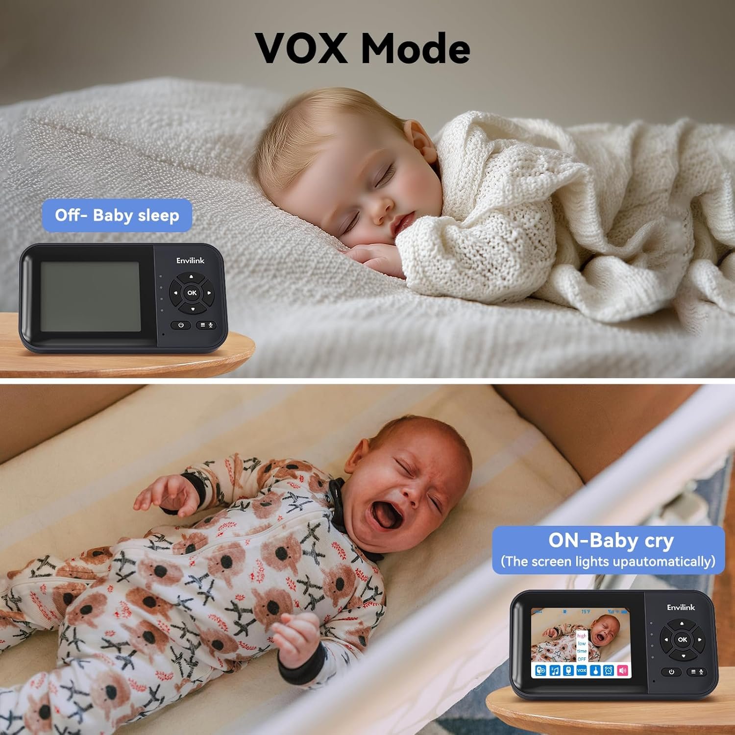 【Smart ECO Mode】: This Baby Monitor Camera Comes With a Convenient Eco Mode. When You Activate It, The Monitor’s Screen Goes To Sleep To Save Battery, But It Instantly Wakes Up When It Detects Any Sound From Your Baby. This Means You Don’t Have To Keep Staring At The Screen All The Time.