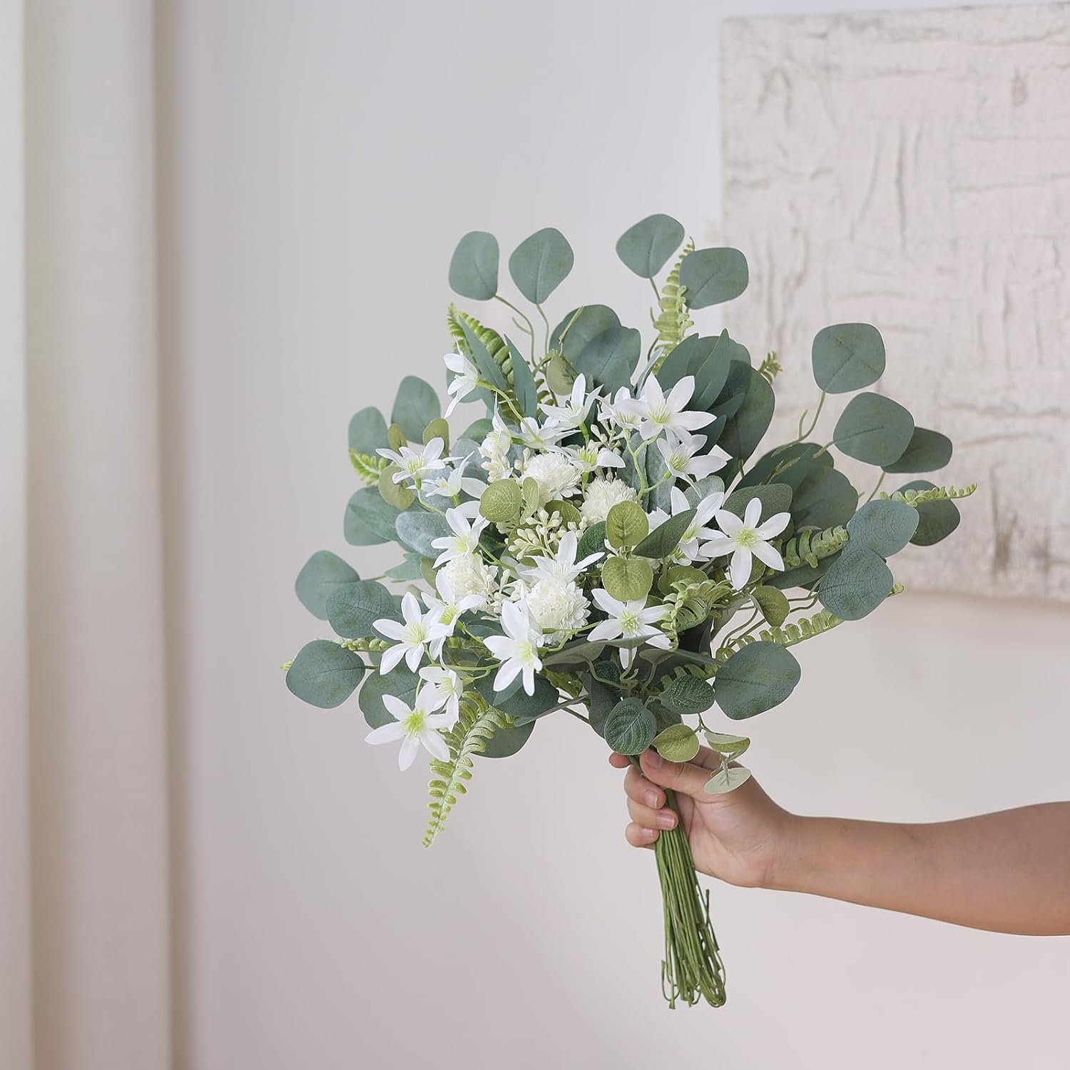 【Versatile】: With its rustic, bright green, refreshing and natural tones, this green combination is not only a great vase filler for wedding decorations, making bridal/bridesmaid bouquets, corsages and table centerpieces or for use in bathrooms, kitchens, home decor, etc., but can also be made into beautiful bouquets yourself.
