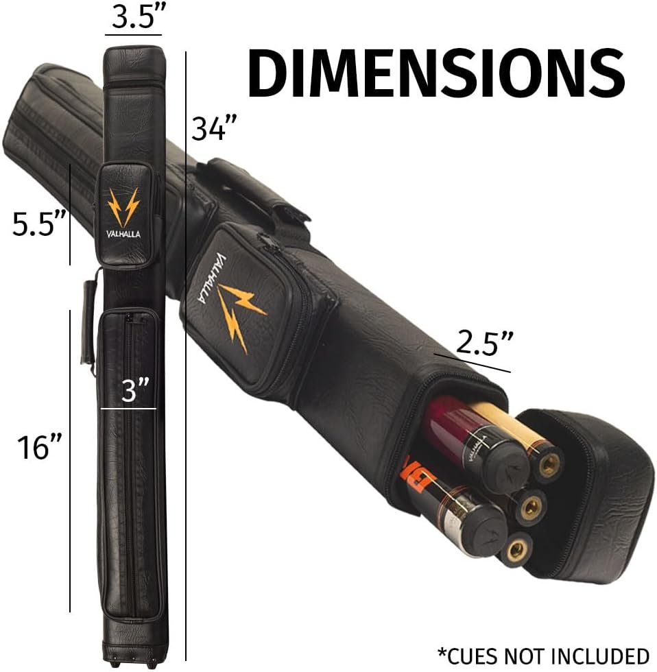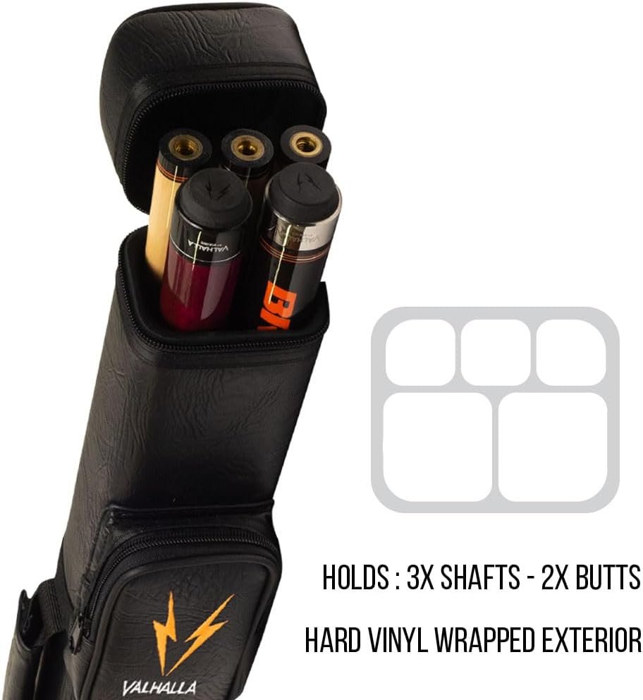 PROTECT YOUR POOL CUE. Valhalla 2×3 pool cases for 2 sticks holds 2 butts and 3 shafts. Comes with jump butt pocket, accessory pocket, shoulder strap and side carry handle