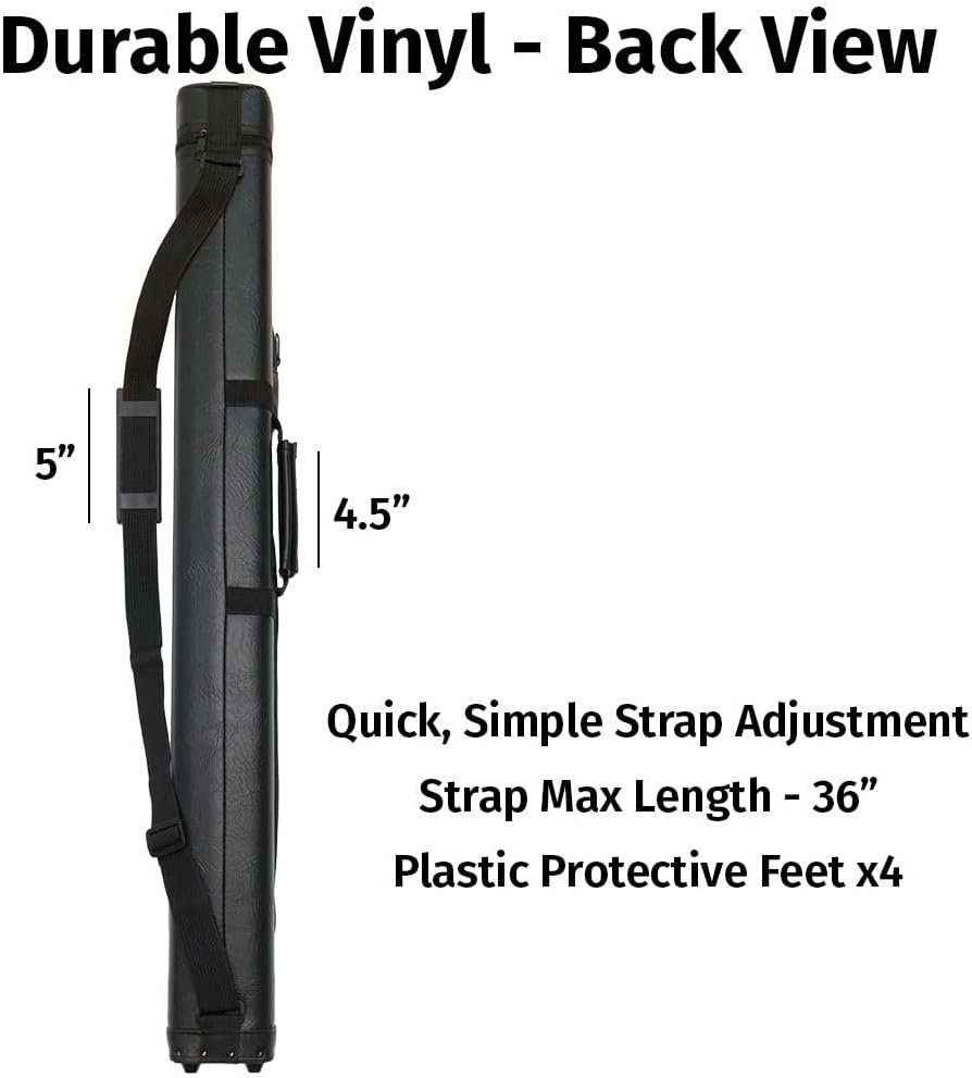 SLIM DESIGN MADE FOR EASY TRANSPORT. Cue stick holder is designed with a slim fit, handle, and shoulder strap. Bringing your cues with you from a local league, tournament, or a friends house has never been easier
