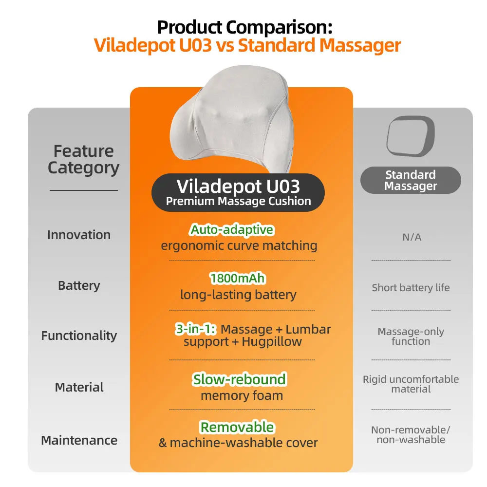 Viladepot Massage Pillows Multi-level Adjustment Kneading Massage Hot Compress Relieve Body Fatigue