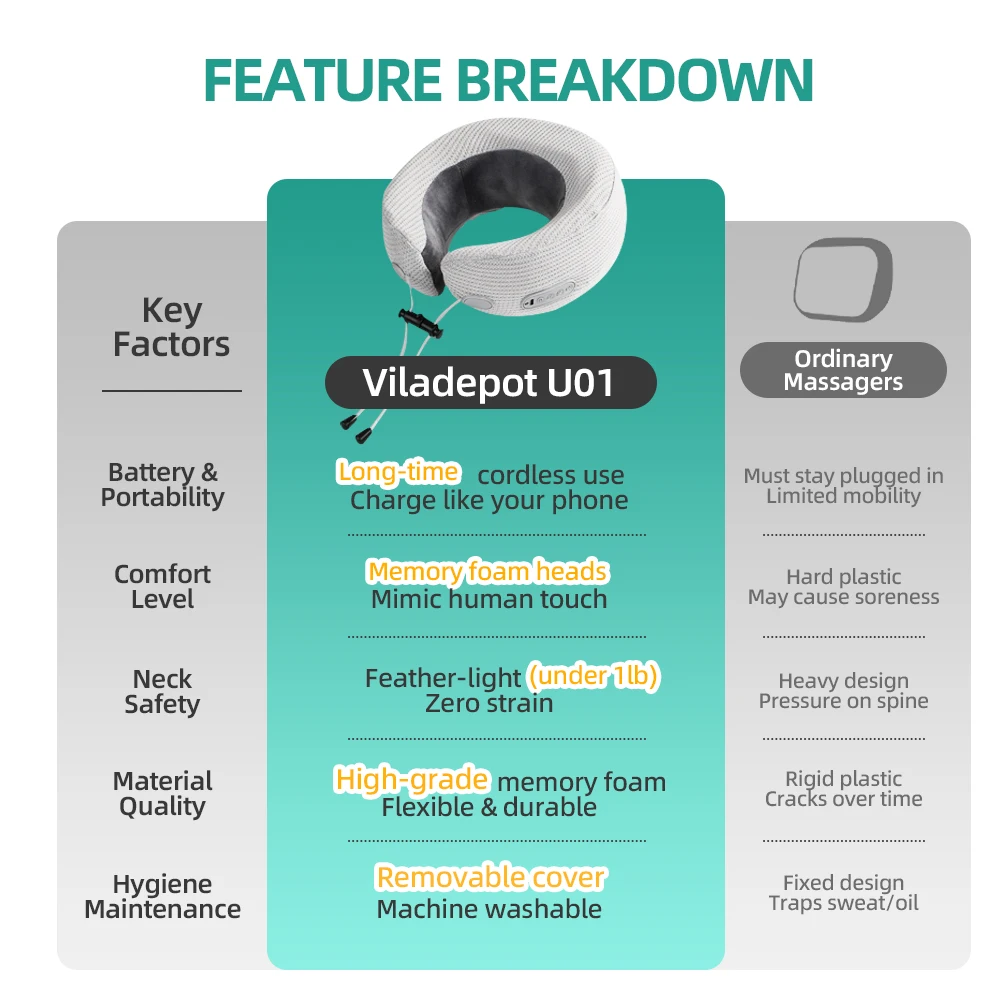 Viladepot Massage Pillows U-Shaped Neck Massager Kneading Massage Hot Compress Vibration Relieve Neck Fatigue