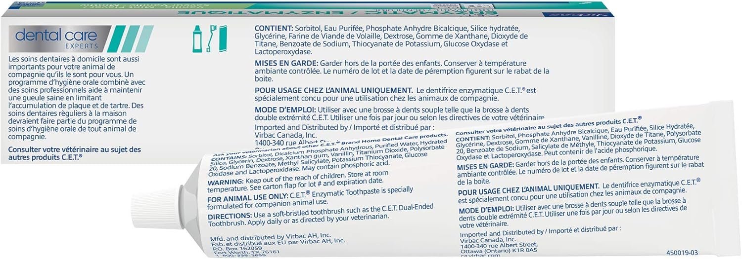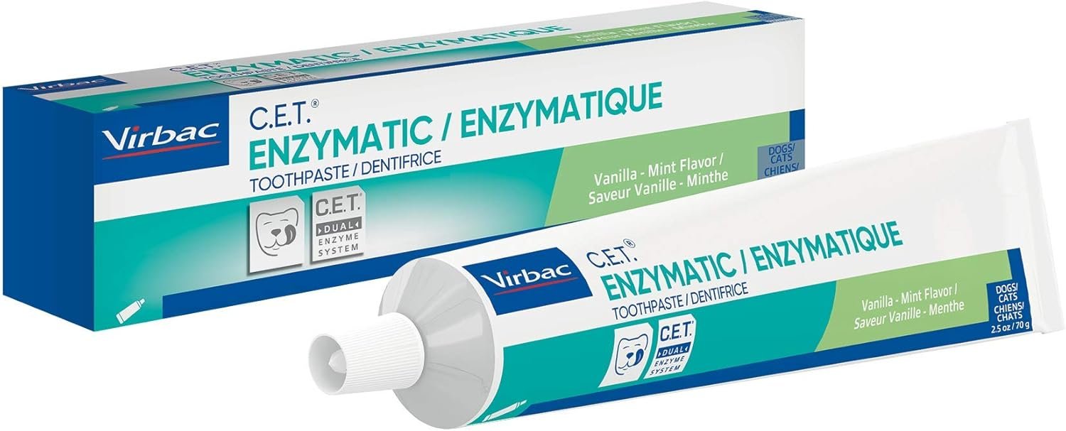 Virbac C.E.T. Enzymatic Toothpaste Eliminates Bad Breath by Removing Plaque and Tartar Buildup Best Pet Dental Care Toothpaste Vanilla Mint Flavor 2.5 Oz Tube