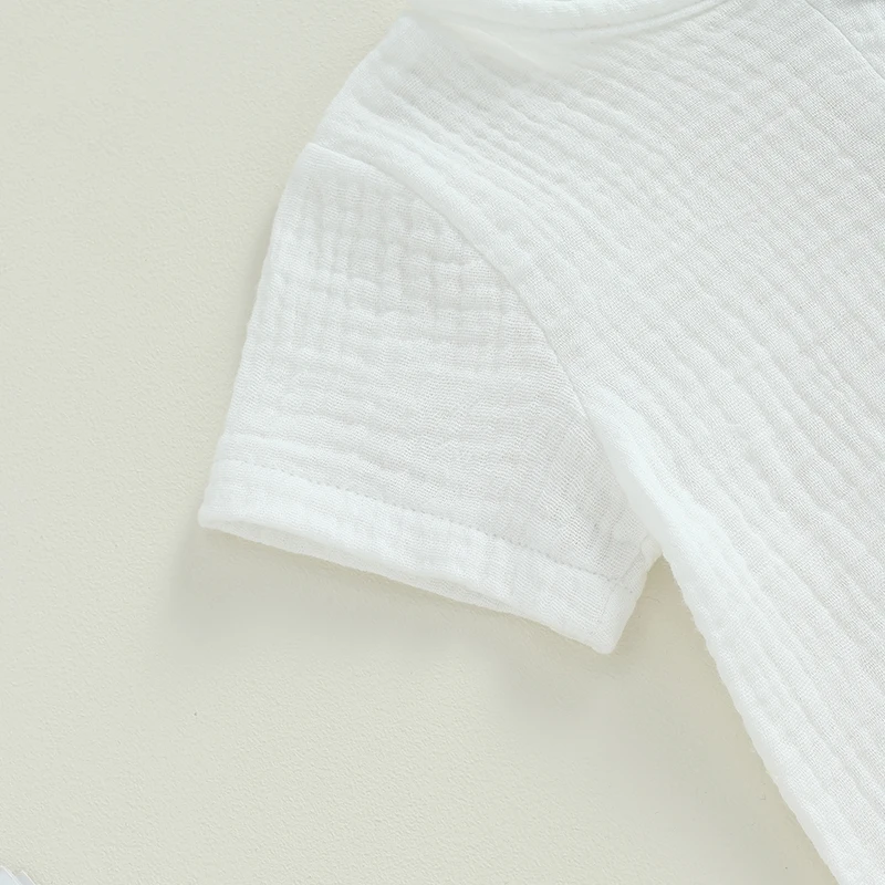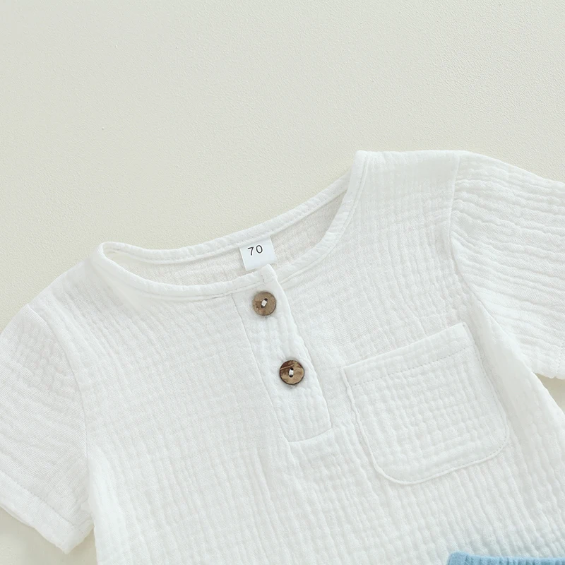 VISgogo 0-3Y Baby Boy Clothes Outfits Short Sleeve Button Down Pocket Tops Solid Color Shorts Set Toddler Summer Clothes 2Pcs
