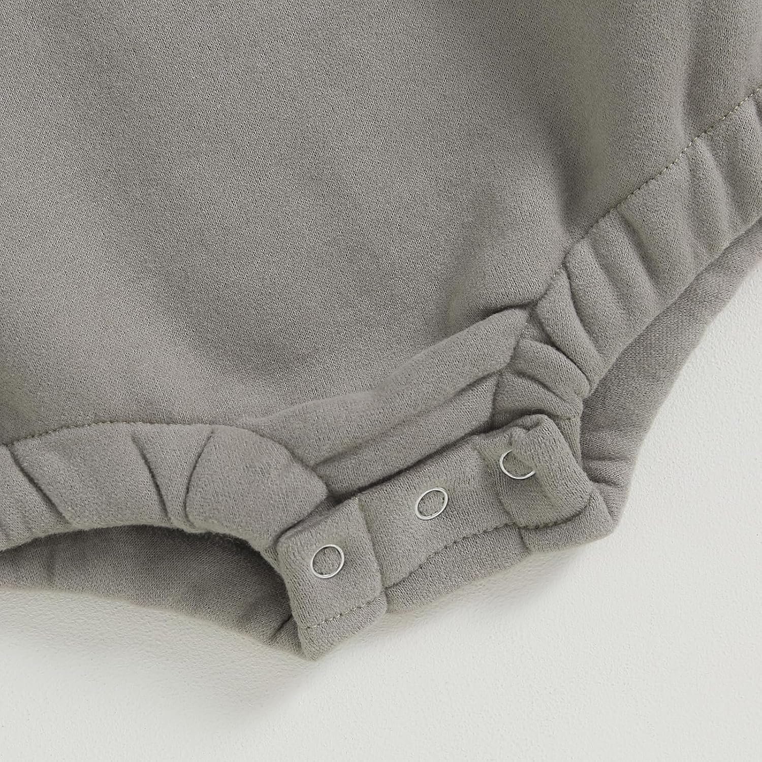 Customers find the sweatshirt romper cute, well-made with thick material that holds up well for babies, and appreciate its soft, cozy feel. The romper is warm and easy to put on, with one customer noting the secure snaps in the crotch, and they consider it good value for the price. Regarding size, while some customers say it fits as expected, others mention it runs a little big.