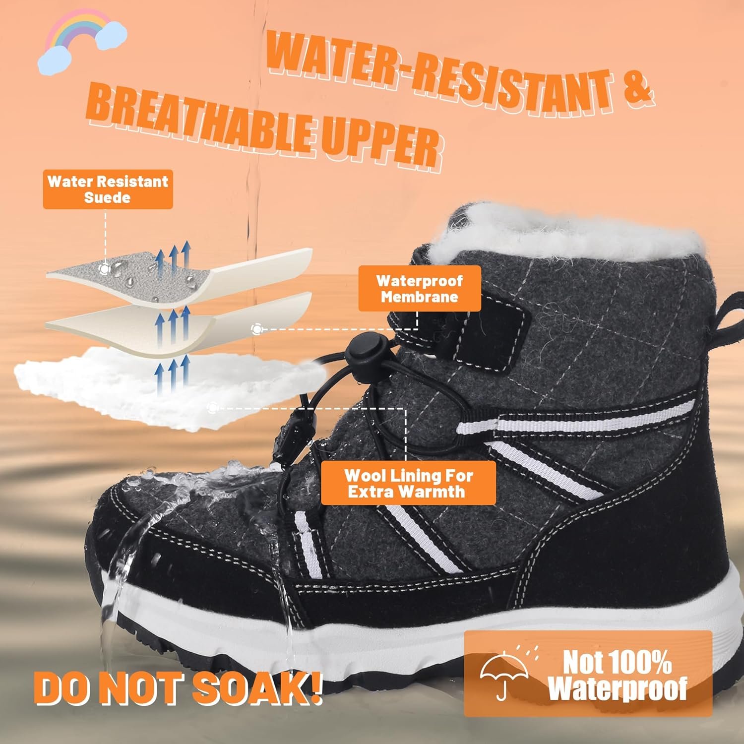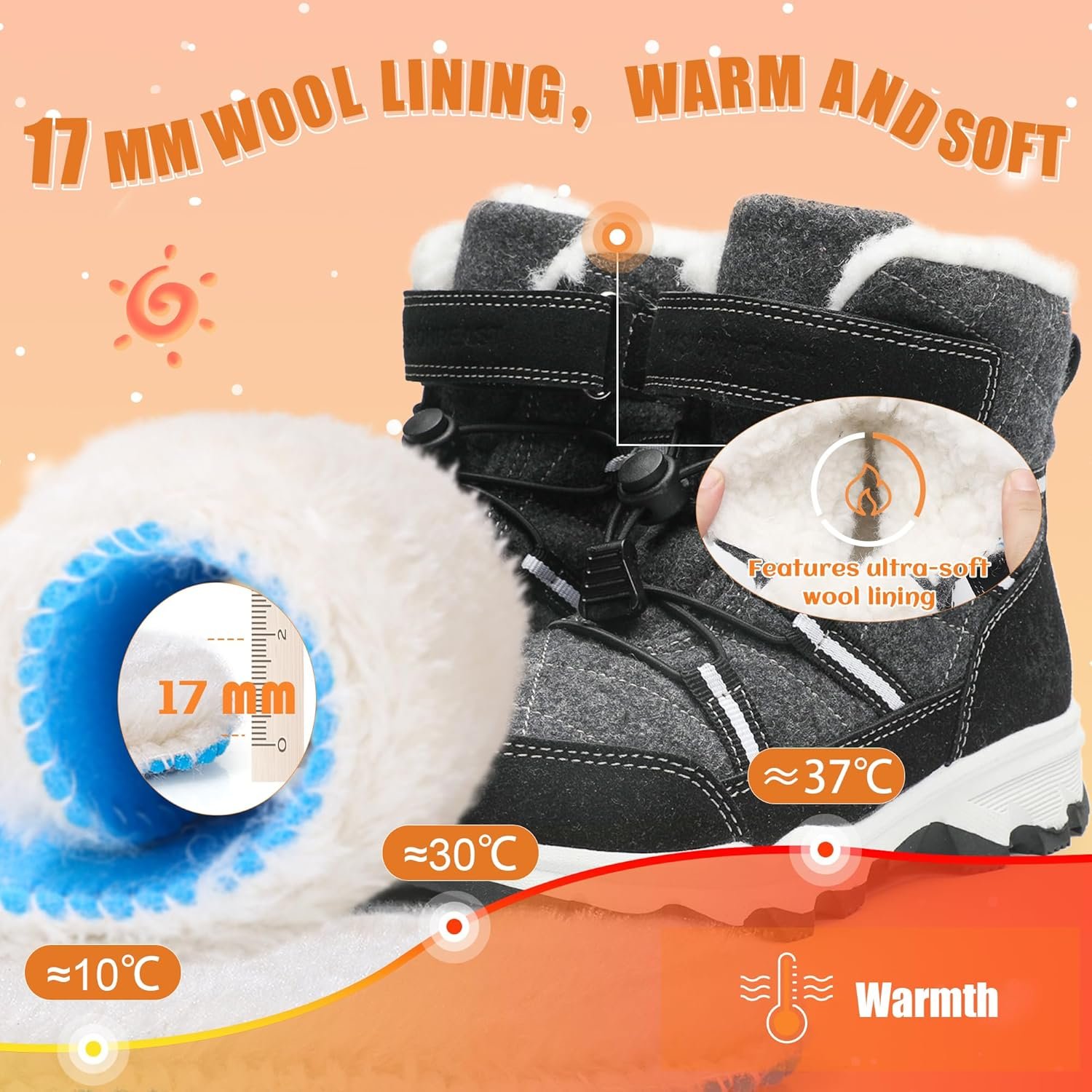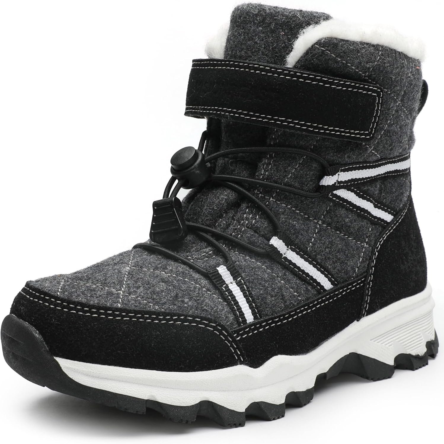visionreast Boys Girls Wool Lining Snow Boots Winter Walking Boots for Kids Non Slip Unisex-Child Cold Weather Shoes Outdoor Boots