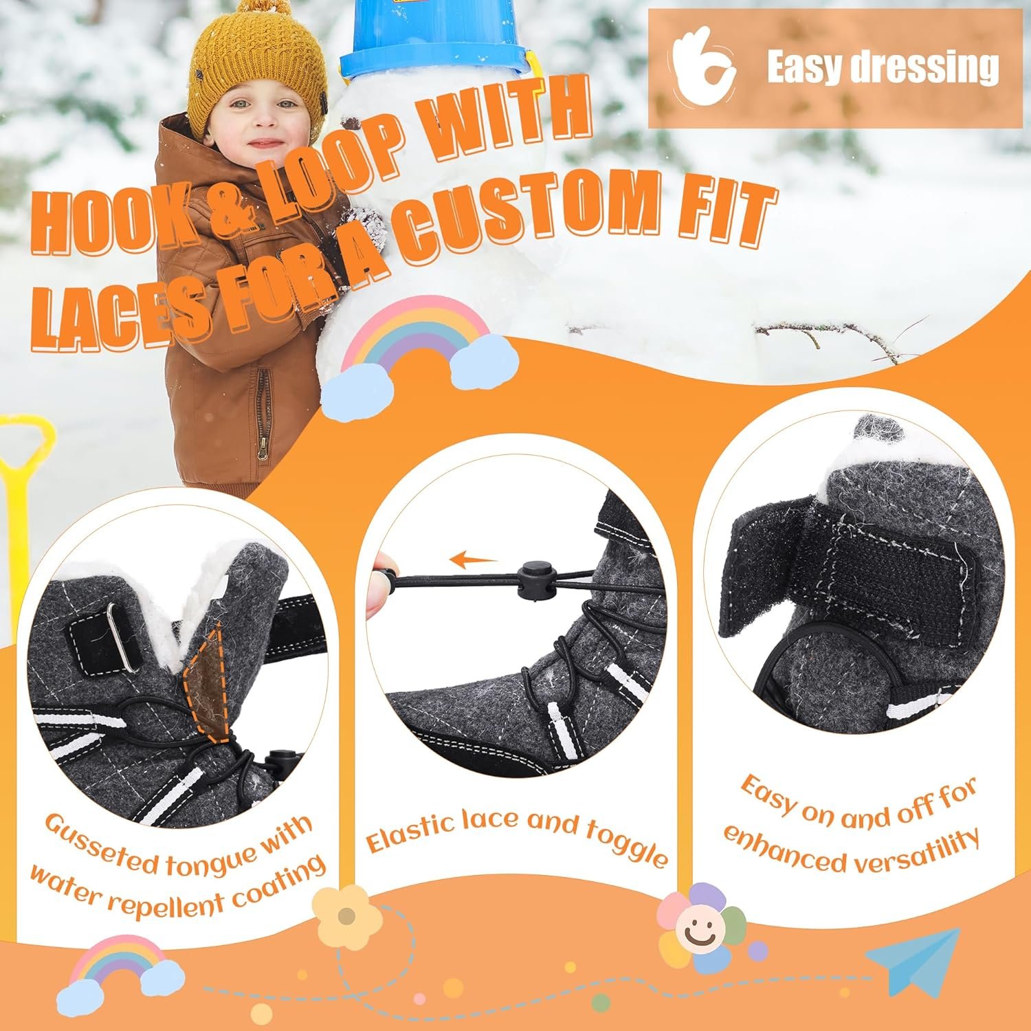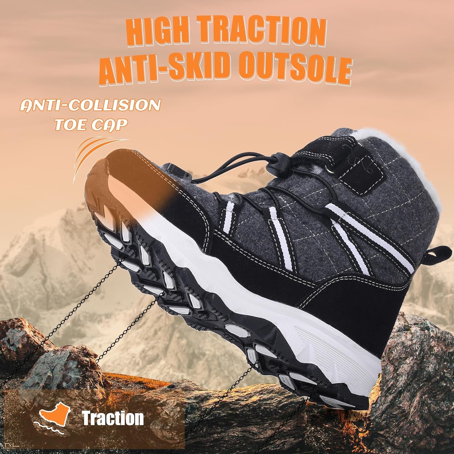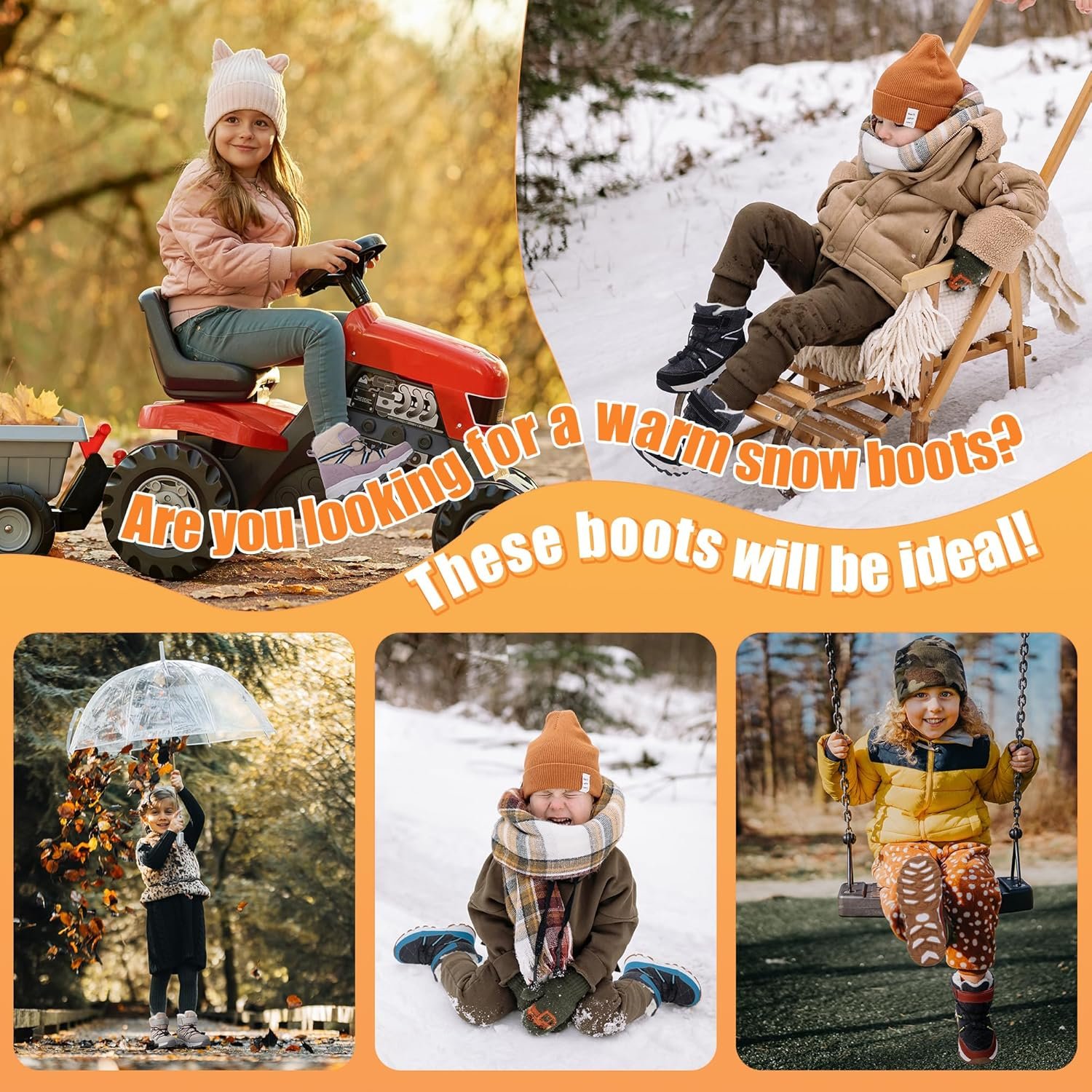 visionreast Boys Girls Wool Lining Snow Boots Winter Walking Boots for Kids Non Slip Unisex-Child Cold Weather Shoes Outdoor Boots