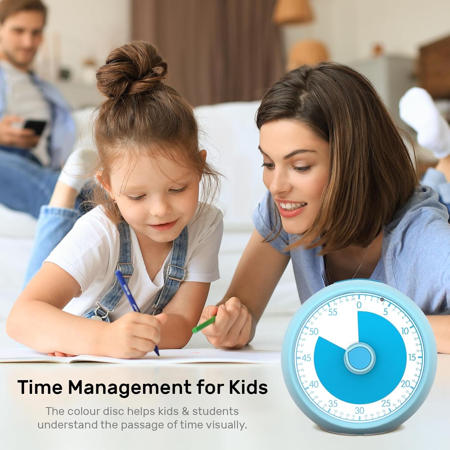 Visual Timer 60-Minute, Kids Timer for Homeschool Desk, Time Management Tools with Silent Operation, Timer for Kitchen Office Classroom (Blue)