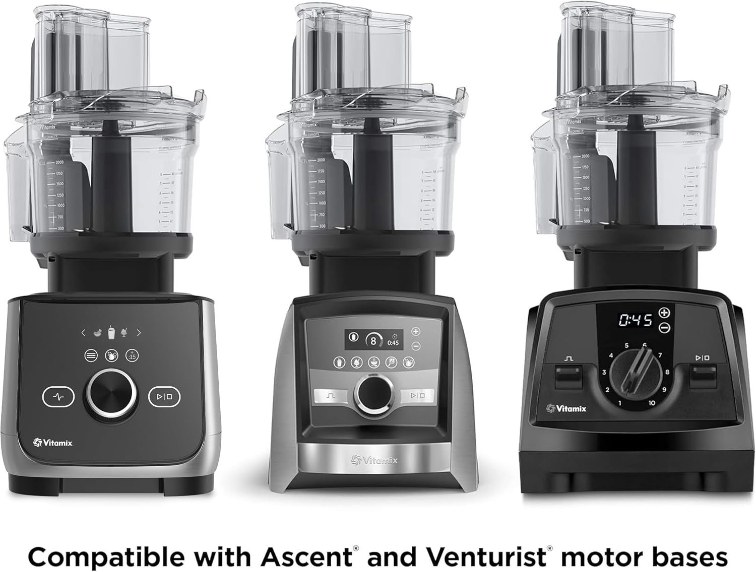 High performance processing plus added versatility for your Ascent series blender with SELF-DETECT technology. The food processor attachment eliminates storing another stand-alone appliance. Capacity – 12 c dry; 9 c wet. Clear bowl, lid, and food pusher. Easy assembly and disassembly. Intuitive Storage Solution with minimal parts. base, lid, pusher. Disclaimer: *Compatible with only Ascent and Venturist blenders. Motor base not included.