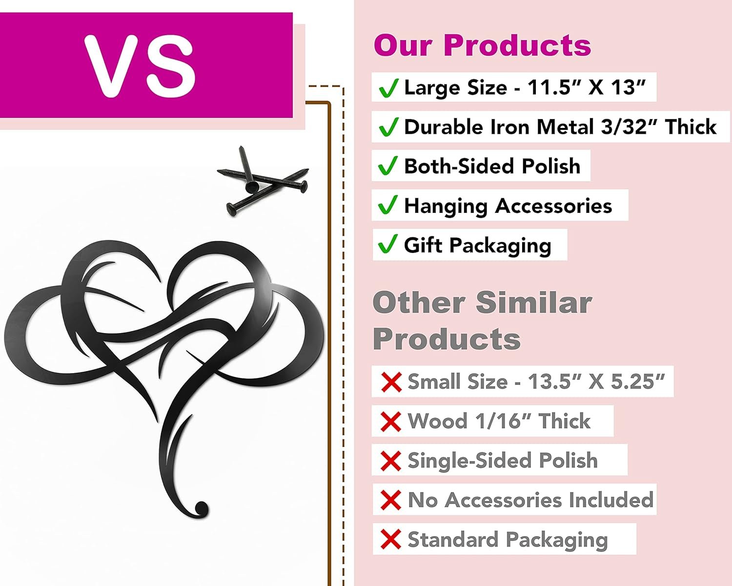 RUSTIC CHARM TO ANY ROOM – ViveGate infinity heart wall decor metal comes pre-finished in black. Place it in your hallway, kitchen, bathroom, bedroom, near the TV, pictures or painting